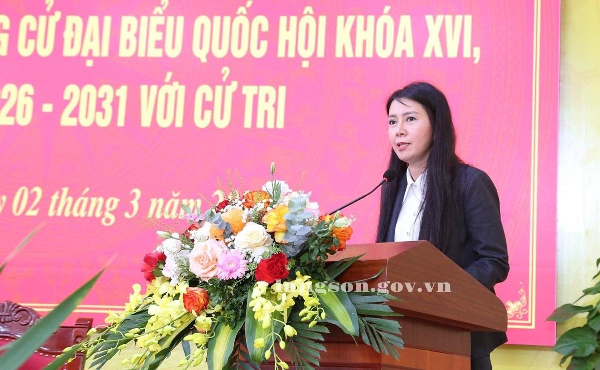 Tiếp đó, các ứng cử viên ĐBQH khóa XVI đã trình bày chương trình hành động và những nội dung công tác trọng tâm nếu được bầu làm ĐBQH khóa XVI, nhiệm kỳ 2026 – 2031. Theo đó, các ứng cử viên cam kết sẽ tiếp tục học tập, rèn luyện, không ngừng phấn đấu để nâng cao trình độ, thực hiện tốt chức trách, nhiệm vụ của người ĐBQH đại diện cho ý chí, nguyện vọng của cử tri; kiến nghị xây dựng hoàn thiện hệ thống cơ chế chính sách để thúc đẩy phát triển các vùng đặc thù, khu vực miền núi, phấn đấu xây dựng tỉnh Lạng Sơn trở thành cực tăng trưởng của vùng Trung du và miền núi phía Bắc vào năm 2030; làm tốt công tác xây dựng Đảng và giám sát việc thực hiện Nghị quyết Đại hội XIII của Đảng; giữ mối liên hệ chặt chẽ, luôn lắng nghe, tiếp thu đầy đủ các tâm tư, nguyện vọng chính đáng của cử tri.