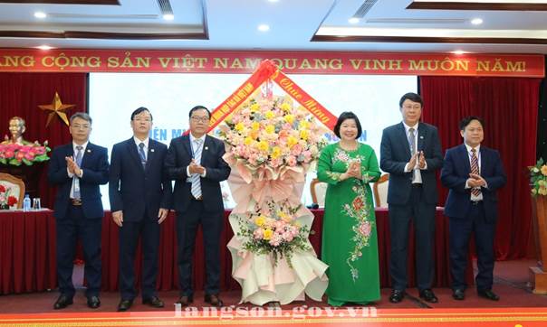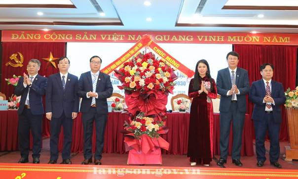 Đồng chí Đoàn Thu Hà, Phó Bí thư Tỉnh ủy tặng hoa chúc mừng đại hội
