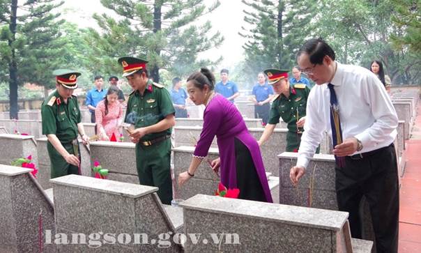 Đoàn công tác Quân khu 1 viếng nghĩa trang liệt sĩ tại Lạng Sơn