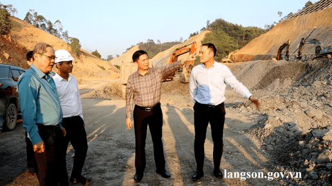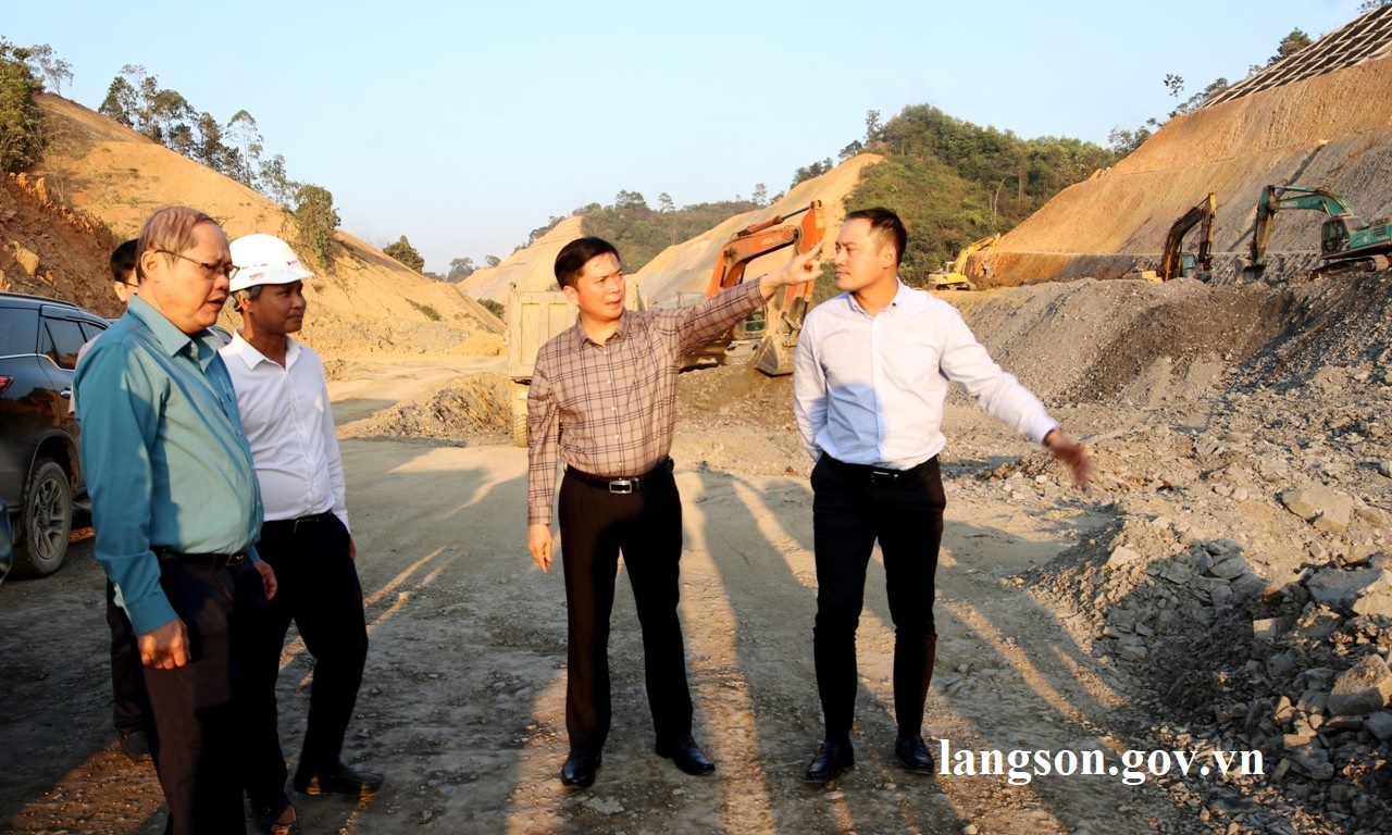 Đồng chí Đinh Hữu Học, Phó Chủ tịch Thường trực UBND tỉnh kiểm tra tình hình thực hiện dự án tuyến cao tốc cửa khẩu Hữu Nghị - Chi Lăng
