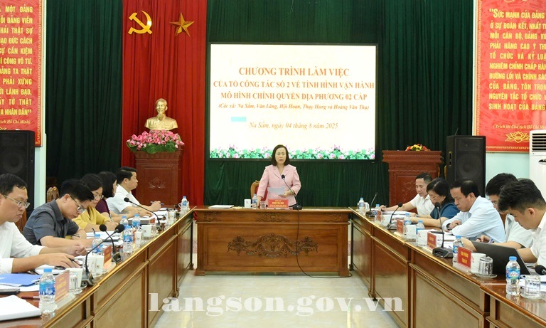 Ngày 04/8/2025, Tổ công tác số 02 do đồng chí Đoàn Thị Hậu, Phó Bí thư Thường trực Tỉnh ủy, Chủ tịch HĐND tỉnh làm Trưởng đoàn đã làm việc về tình hình triển khai hoạt động mô hình chính quyền địa phương 2 cấp tại các xã: Na Sầm, Văn Lãng, Hội Hoan, Thụy Hùng và Hoàng Văn Thụ.