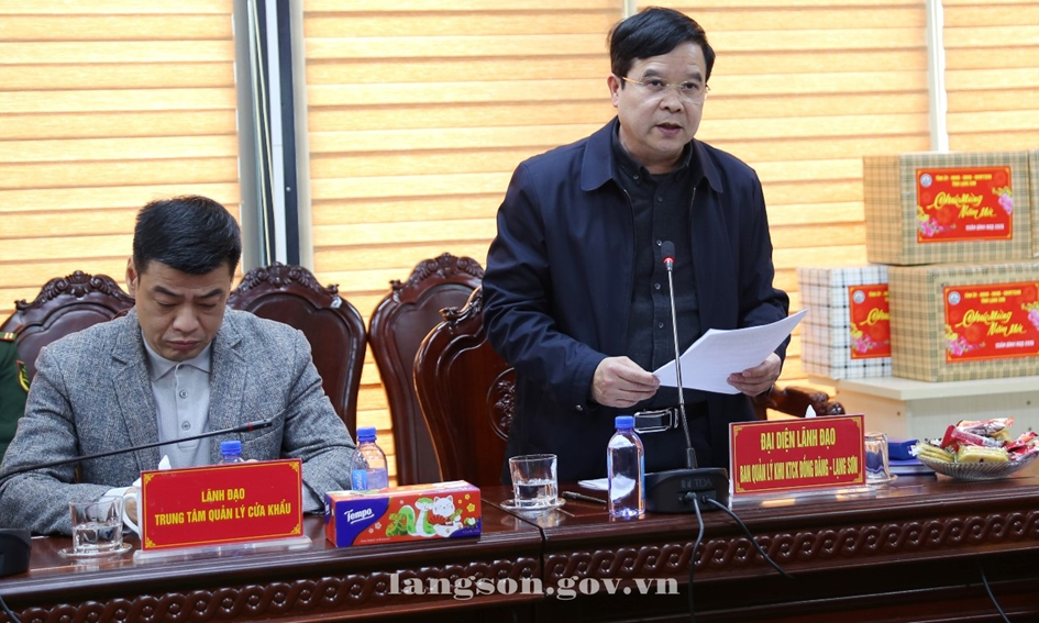 Đồng chí Phó Bí thư Tỉnh ủy đề nghị, các lực lượng làm nhiệm vụ tại Cửa khẩu quốc tế Hữu Nghị tiếp tục quán triệt và thực hiện nghiêm các chỉ đạo của Trung ương, của tỉnh về công tác bảo đảm an ninh, trật tự, an toàn biên giới, an toàn cửa khẩu; tổ chức trực Tết nghiêm túc, đầy đủ, đúng quy định, không để bị động, bất ngờ; tạo điều kiện thuận lợi nhất cho hoạt động xuất nhập cảnh, xuất nhập khẩu hàng hóa, nhất là các mặt hàng phục vụ Tết; đồng thời có các biện pháp kiên quyết đấu tranh, ngăn chặn các hành vi buôn lậu, gian lận thương mại, vận chuyển trái phép hàng hóa qua biên giới; quan tâm chăm lo đời sống vật chất, tinh thần cho cán bộ, chiến sĩ, công chức, viên chức và người lao động trực Tết; bảo đảm chế độ, chính sách theo quy định; kịp thời động viên, khích lệ tinh thần để các cán bộ, công chức, viên chức, chiến sĩ yên tâm công tác, hoàn thành tốt nhiệm vụ được giao. Đồng thời tham gia tích cực các hoạt động an sinh xã hội của địa phương, góp phần giúp đỡ, chăm lo đời sống vật chất, tinh thần nhân dân khu vực biên giới.
