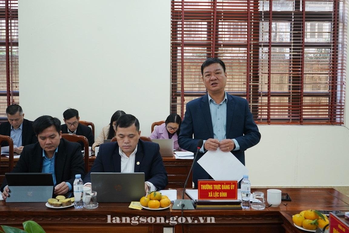 Đồng chí Trịnh Tiến Đông, Bí thư Đảng ủy xã Lộc Bình phát biểu tại buổi làm việc