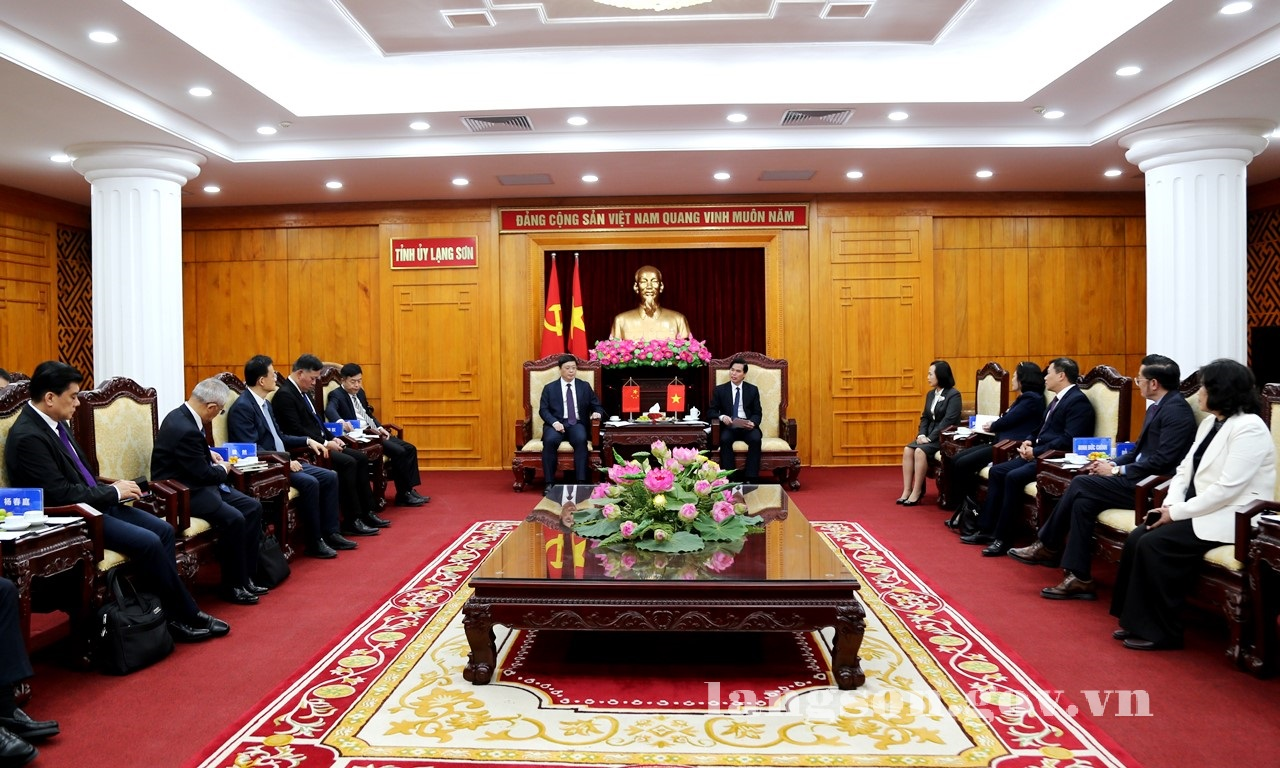Chiều 27/11/2025, đồng chí Hoàng Quốc Khánh, Bí thư Tỉnh ủy Lạng Sơn tiếp xã giao Đoàn đại biểu khu tự trị dân tộc Choang Quảng Tây, Trung Quốc do đồng chí Vi Thao, Chủ tịch Chính quyền khu tự trị dân tộc Choang Quảng Tây làm trưởng đoàn. Cùng tham gia tiếp đoàn có các đồng chí: Đoàn Thị Hậu, Phó Bí thư Thường trực Tỉnh ủy, Chủ tịch HĐND tỉnh; Nguyễn Thị Hường, Tổng lãnh sự Việt Nam tại Nam Ninh, Trung Quốc; Đỗ Nam Trung, Vụ trưởng Vụ Đông Bắc Á, Bộ Ngoại giao; lãnh đạo một số sở, ban, ngành của tỉnh.