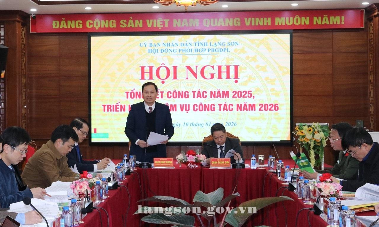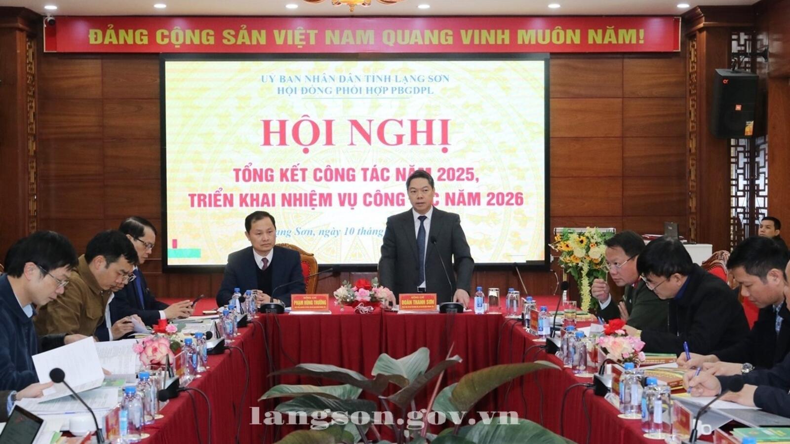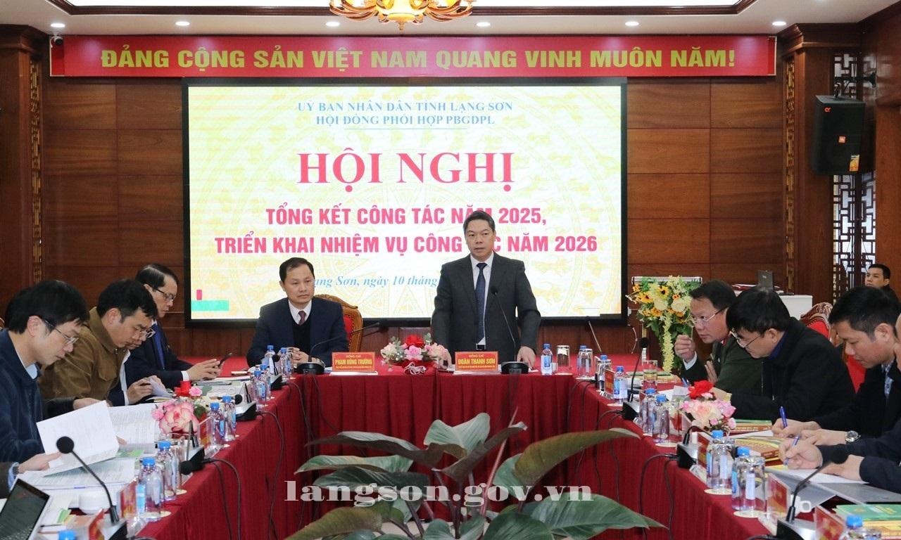 Ngày 10/01/2026, đồng chí Đoàn Thanh Sơn, Phó Chủ tịch UBND tỉnh, Chủ tịch Hội đồng phối hợp phổ biến giáo dục pháp luật (PHPBGDPL) tỉnh chủ trì hội nghị tổng kết đánh giá tình hình hoạt động của Hội đồng PBGDPL năm 2025, triển khai nhiệm vụ năm 2026. Dự hội nghị có lãnh đạo các sở, ban, ngành thành viên Hội đồng PHPBGDPL.
