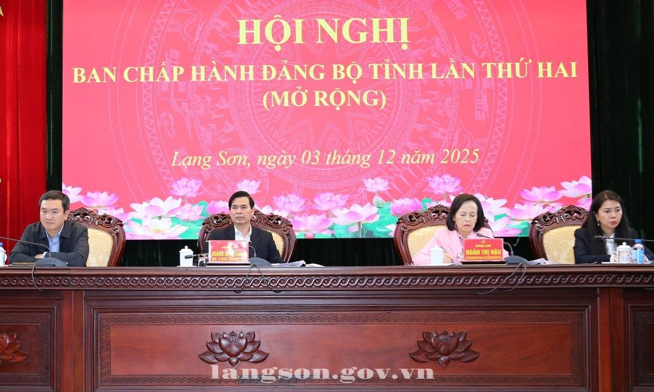 Phát biểu tại hội nghị, đồng chí Hoàng Quốc Khánh, Bí thư Tỉnh ủy thống nhất đánh giá ưu điểm, kết quả công tác năm 2025 và thông qua những mục tiêu, nhiệm vụ, giải pháp tập trung lãnh đạo, chi đạo thực hiện trong năm 2026. Để thực hiện thắng lợi các mục tiêu đã đề ra, đồng chí đề nghị các cấp ủy, chính quyền, MTTQ, các tổ chức chính trị - xã hội, các đồng chí Ủy viên Ban Chấp hành Đảng bộ tỉnh theo chức trách, nhiệm vụ bám sát các văn bản chỉ đạo của Trung ương, của tinh và tình hình thực tiễn của cơ quan, đơn vị, địa bàn tiếp tục phát huy vai trò, trách nhiệm, tập trung khắc phục những tổn tại, hạn chế, khẩn trương cụ thể hóa các nhiệm vụ, giải pháp đã đề ra. Trong đó, tập trung lãnh đạo, chỉ đạo triển khai thực hiện có hiệu quả các mục tiêu, nhiệm vụ, giải pháp phát triển kinh tế - xã hội, quốc phòng, an ninh, đối ngoại, công tác xây dựng Đảng năm 2026; kế hoạch phát triển kinh tế - xã hội 5 năm giai đoạn 2026 - 2030, thúc đẩy tăng trưởng kinh tế năm 2026 đạt mục tiêu 10%; đẩy mạnh việc thực hiện các nghị quyết đột phá của Bộ Chính trị, đặc biệt là các Nghị quyết số 57-NQ/TW, Nghị quyết số 71-NQ/TW…; thực hiện có hiệu quả các Chương trình mục tiêu quốc gia; phân bổ vốn đầu tư công, đẩy mạnh giải ngân vốn đầu tư công từ những tháng đầu năm 2026; tập trung phát triển kinh tế cửa khẩu, thực hiện Đề án thí điểm xây dựng cửa khẩu thông minh bảo đảm tiến độ; xây dựng hạ tầng các khu, cụm công nghiệp, đẩy nhanh tiến độ thực hiện các dự án giao thông trọng điểm; tập trung lãnh đạo toàn diện thực hiện các nhiệm vụ phát triển văn hóa - xã hội, xây dựng trường phổ thông dân tộc nội trú liên cấp tiểu học và trung học cơ sở tại xã biên giới; thực hiện có hiệu quả, đồng bộ các kế hoạch về phát triển du lịch, trọng tâm là du lịch cộng đồng và phát huy giá trị Công viên địa chất toàn cầu UNESCO Lạng Sơn; thực hiện tốt công tác bảo đảm quốc phòng, an ninh trên địa bàn tỉnh.