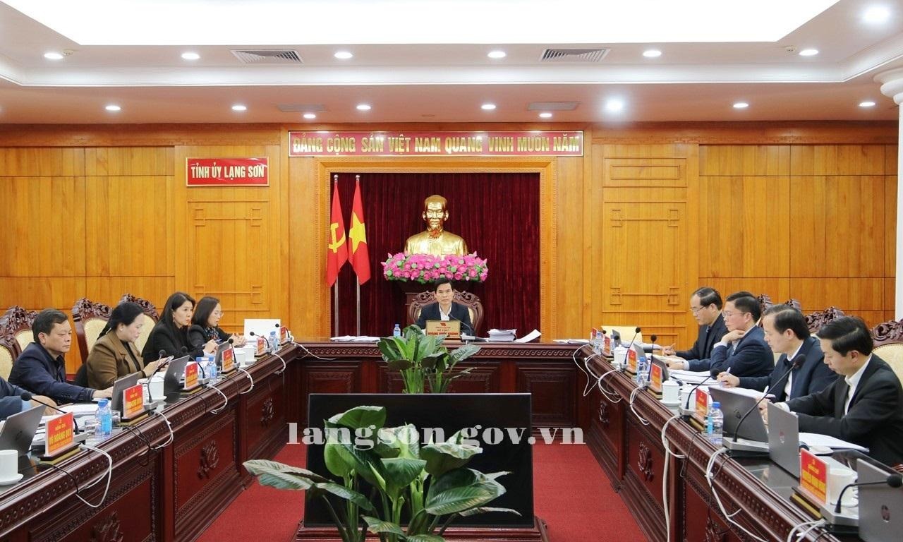 Tại hội nghị, Ban Thường vụ Tỉnh ủy đã xem xét, cho ý kiến đối với các Báo cáo, Tờ trình của Đảng ủy UBND tỉnh về các nội dung: xin chủ trương một số vấn đề liên quan đến Điều chỉnh Quy hoạch chung xây dựng Khu kinh tế cửa khẩu Đồng Đăng – Lạng Sơn đến năm 2045; quy định những nội dung Ban Thường vụ Tỉnh ủy, Thường trực Tỉnh ủy cho chủ trương thuộc lĩnh vực kinh tế – xã hội; bố trí số lượng Phó Chủ tịch UBND đối với các phường, xã trên địa bàn tỉnh; tổng kết thực hiện Chỉ thị số 15-CT/TU ngày 27/7/2017 của Ban Thường vụ Tỉnh ủy về tăng cường lãnh đạo, chỉ đạo công tác thương binh, liệt sĩ và người có công với cách mạng giai đoạn 2017–2025; xin chủ trương đầu tư đối với các dự án: Nhà máy điện gió Đình Lập 1, Nhà máy điện gió Đình Lập 1.1, Nhà máy điện gió Đình Lập 4, Nhà máy điện gió Thăng Long 3…