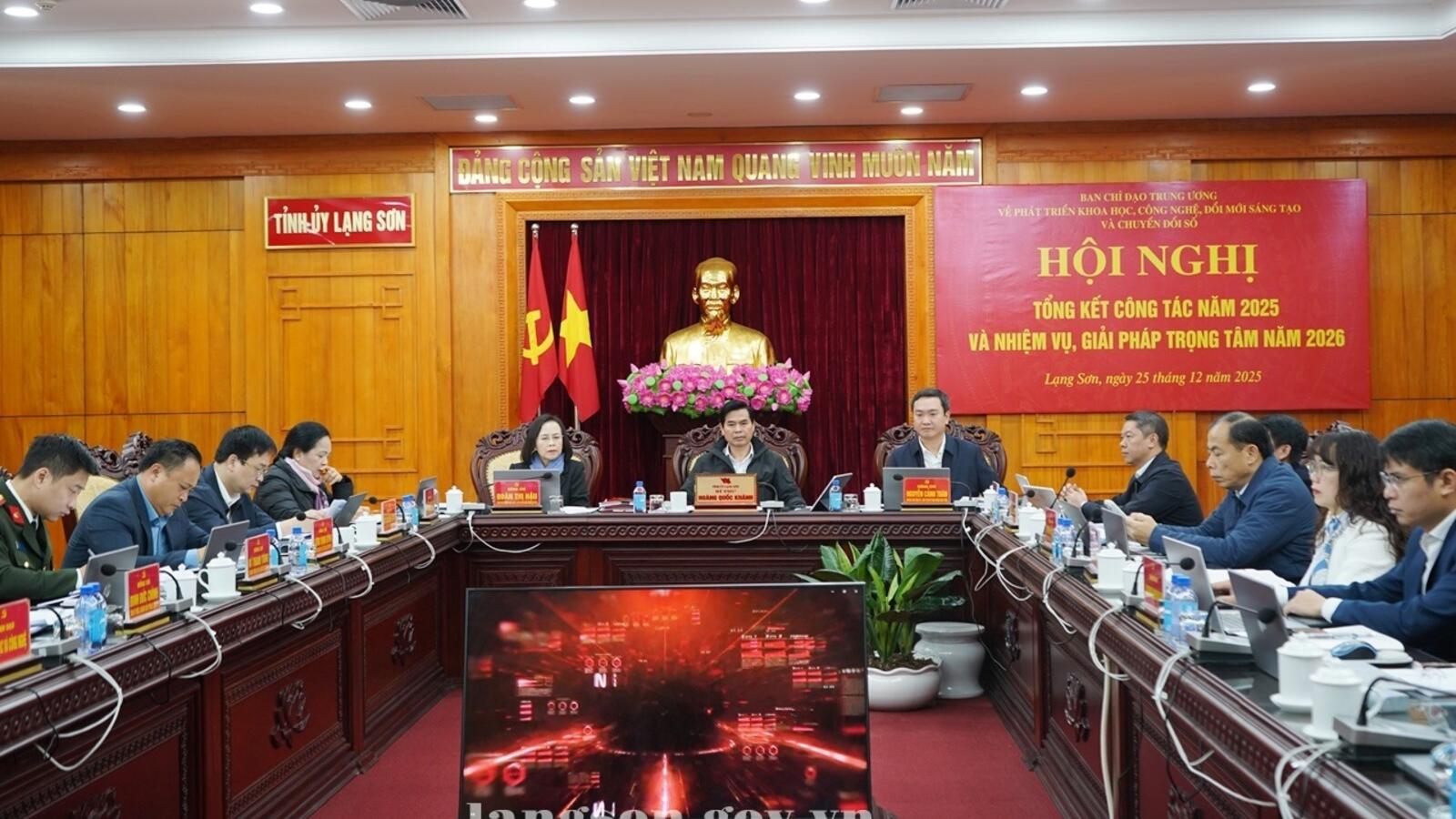 Ngày 25/12/2025, Ban Chỉ đạo Trung ương về phát triển khoa học, công nghệ, đổi mới sáng tạo và chuyển đổi số tổ chức hội nghị tổng kết công tác năm 2025 và phương hướng, nhiệm vụ trọng tâm năm 2026 bằng hình thức trực tiếp kết hợp trực tuyến từ điểm cầu trung ương đến điểm cầu cấp tỉnh, cấp xã. Đồng chí Tô Lâm, Tổng Bí thư, Trưởng Ban Chỉ đạo Trung ương chủ trì hội nghị. Cùng tham dự có đồng chí Phạm Minh Chính, Thủ tướng Chính phủ, Phó Trưởng Ban Chỉ đạo; đồng chí Trần Cẩm Tú, Thường trực Ban Bí thư, Phó Trưởng Ban Chỉ đạo. Dự hội nghị có các đồng chí Ủy viên Bộ Chính trị, Ủy viên Trung ương Đảng, các thành viên Ban chỉ đạo, lãnh đạo các bộ, ban, ngành, cơ quan trung ương.