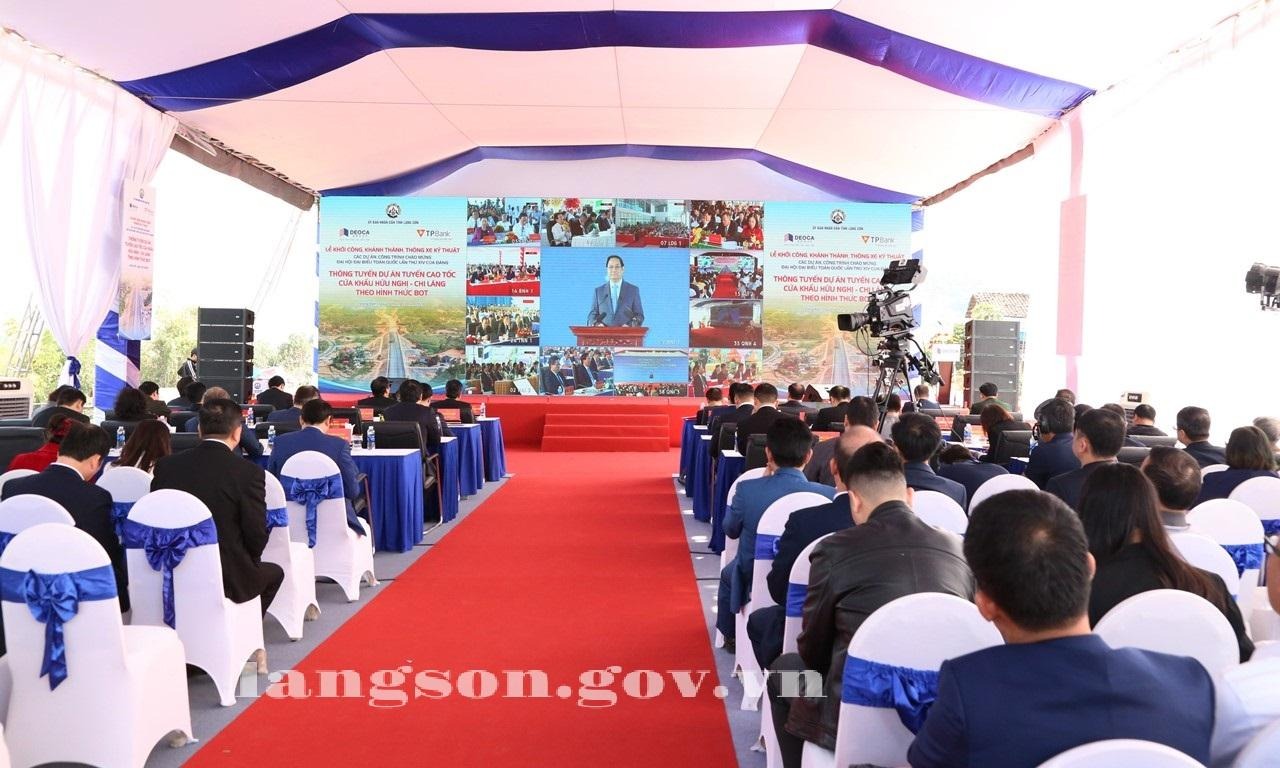 Phát biểu tại buổi lễ, Thủ tướng Chính phủ Phạm Minh Chính ghi nhận, biểu dương sự nỗ lực, quyết tâm của các bộ, ngành, địa phương, các chủ đầu tư, nhà thầu, các đơn vị tư vấn, kỹ sư, công nhân trong quá trình triển khai thực hiện các dự án, đồng thời bày tỏ lòng cảm ơn sâu sắc tới bà con nhân dân đã sẵn sàng nhường đất, dời nhà, tái định cư, chấp nhận thiệt thòi trước mắt để xây dựng kết cấu hạ tầng cho tương lai đất nước và cho chính bản thân người dân. Thủ tướng cũng gửi lời tri ân và cảm ơn sâu sắc đến doanh nghiệp trong và ngoài nước đã tin tưởng đầu tư, cống hiến cho một Việt Nam phát triển giàu mạnh, tự cường.