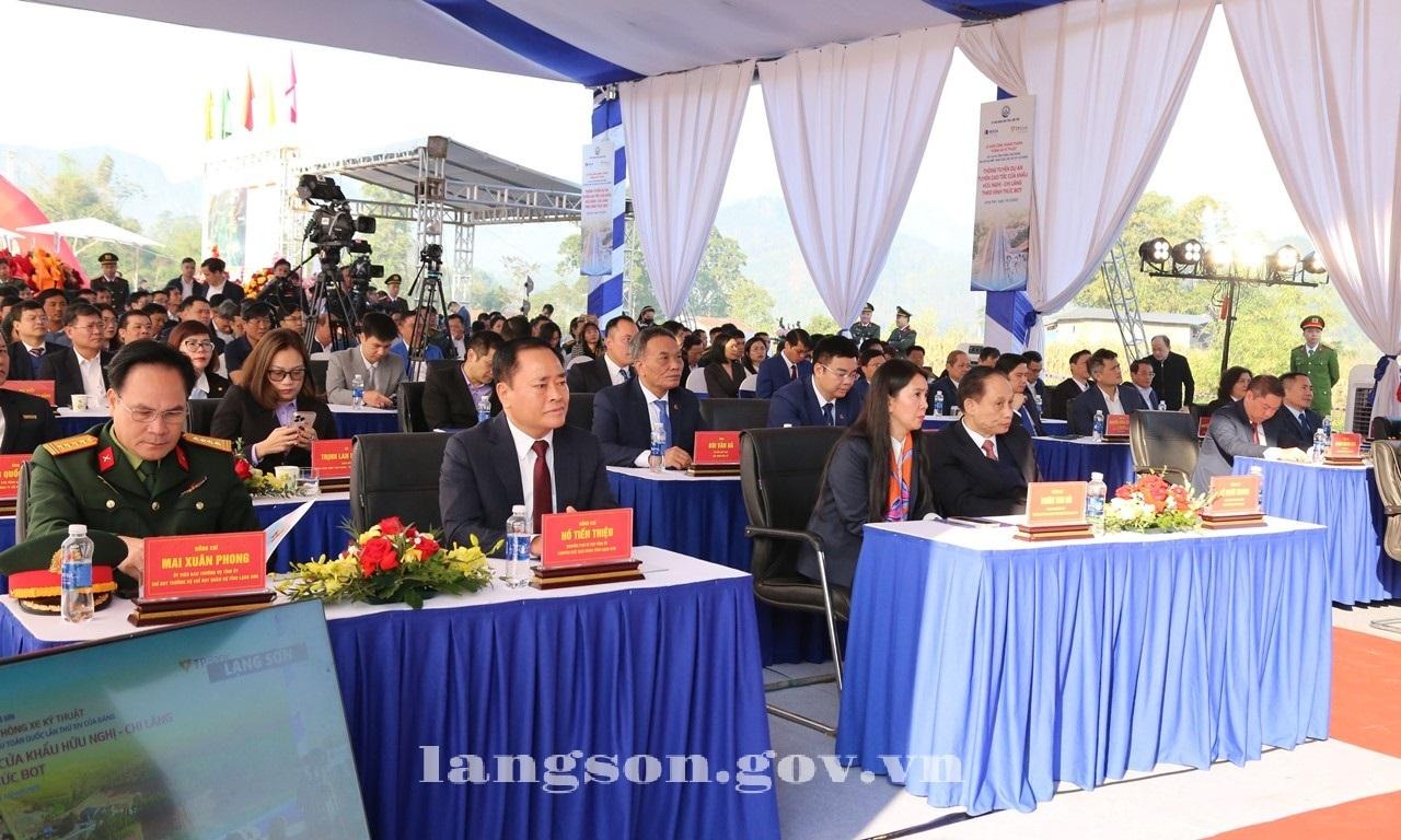 Tham dự tại điểm cầu lễ thông tuyến dự án tuyến cao tốc cửa khẩu Hữu Nghị - Chi Lăng có đồng chí Lê Hoài Trung, Bí thư Trung ương Đảng, Bộ trưởng Bộ Ngoại giao; đại diện Bộ Xây dựng. Về phía tỉnh có các đồng chí: Nguyễn Cảnh Toàn, Phó Bí thư Tỉnh ủy, Chủ tịch UBND tỉnh; Đoàn Thu Hà, Phó Bí thư Tỉnh ủy, Chủ tịch Ủy ban MTTQ Việt Nam tỉnh; Hồ Tiến Thiệu, nguyên Phó Bí thư Tỉnh ủy, nguyên Chủ tịch UBND tỉnh; các đồng chí Ủy viên Ban Thường vụ Tỉnh ủy; lãnh đạo HĐND, UBND tỉnh; lãnh đạo các sở, ban, ngành, một số xã, phường; chủ đầu tư dự án, các doanh nghiệp.