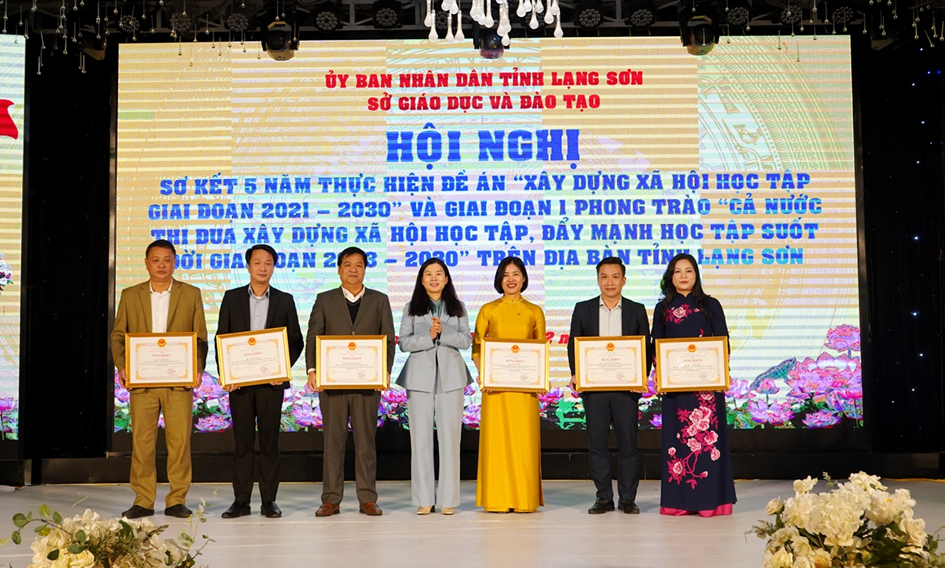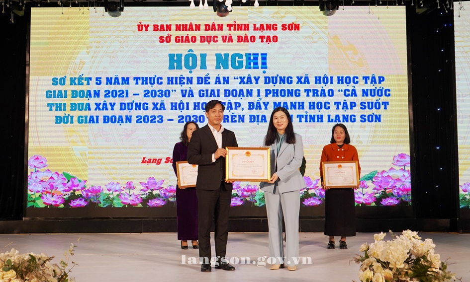 Nhân dịp này có 04 tập thể, 06 cá nhân được nhận Bằng khen của UBND tỉnh; 07 cá nhân được nhận Giấy khen của Sở Giáo dục và Đào tạo tỉnh về thành tích xuất sắc, tiêu biểu trong xây dựng xã hội học tập giai đoạn 2021 - 2025./.