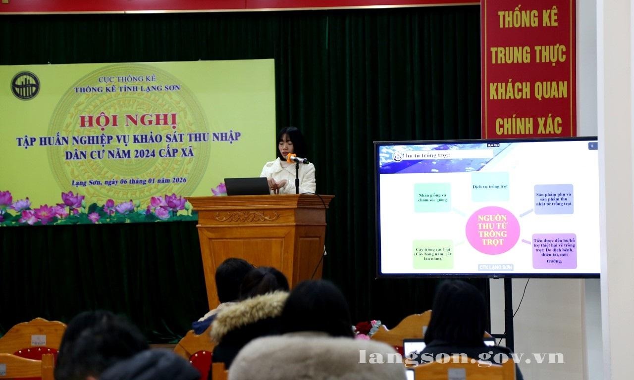 Trong chương trình hội nghị tập huấn, các đại biểu đã được truyền đạt các nội dung gồm: giới thiệu thực hiện quy trình khảo sát; hướng dẫn thu thập thông tin và điền phiếu khảo sát tiêu chí thu nhập (thu nhập từ tiền lương, tiền công; thu nhập từ trồng trọt; thu nhập từ chăn nuôi; thu nhập từ lâm nghiệp; thu nhập từ thuỷ sản; thu nhập từ hoạt động sản xuất kinh doanh phi nông, lam nghiệp, thuỷ sản; thu khác tính vào thu nhập); các lưu ý trong quá trình triển khai thực hiện quy trình thu thập thông tin, tính toán thu nhập dân cư năm 2024…