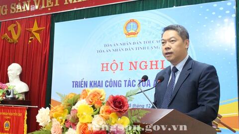 Phát biểu tại hội nghị, đồng chí Đoàn Thanh Sơn, Phó Chủ tịch UBND tỉnh chúc mừng những kết quả TAND 02 cấp tỉnh đã đạt được trong năm 2025. Thời gian tới, đồng chí mong muốn TAND tỉnh tiếp tục tăng cường phối hợp, chủ động trao đổi thông tin với UBND tỉnh, các sở, ngành đối với các vụ án liên quan; thường xuyên trao đổi thông tin, kịp thời tháo gỡ khó khăn, vướng mắc trong quá trình thực hiện.