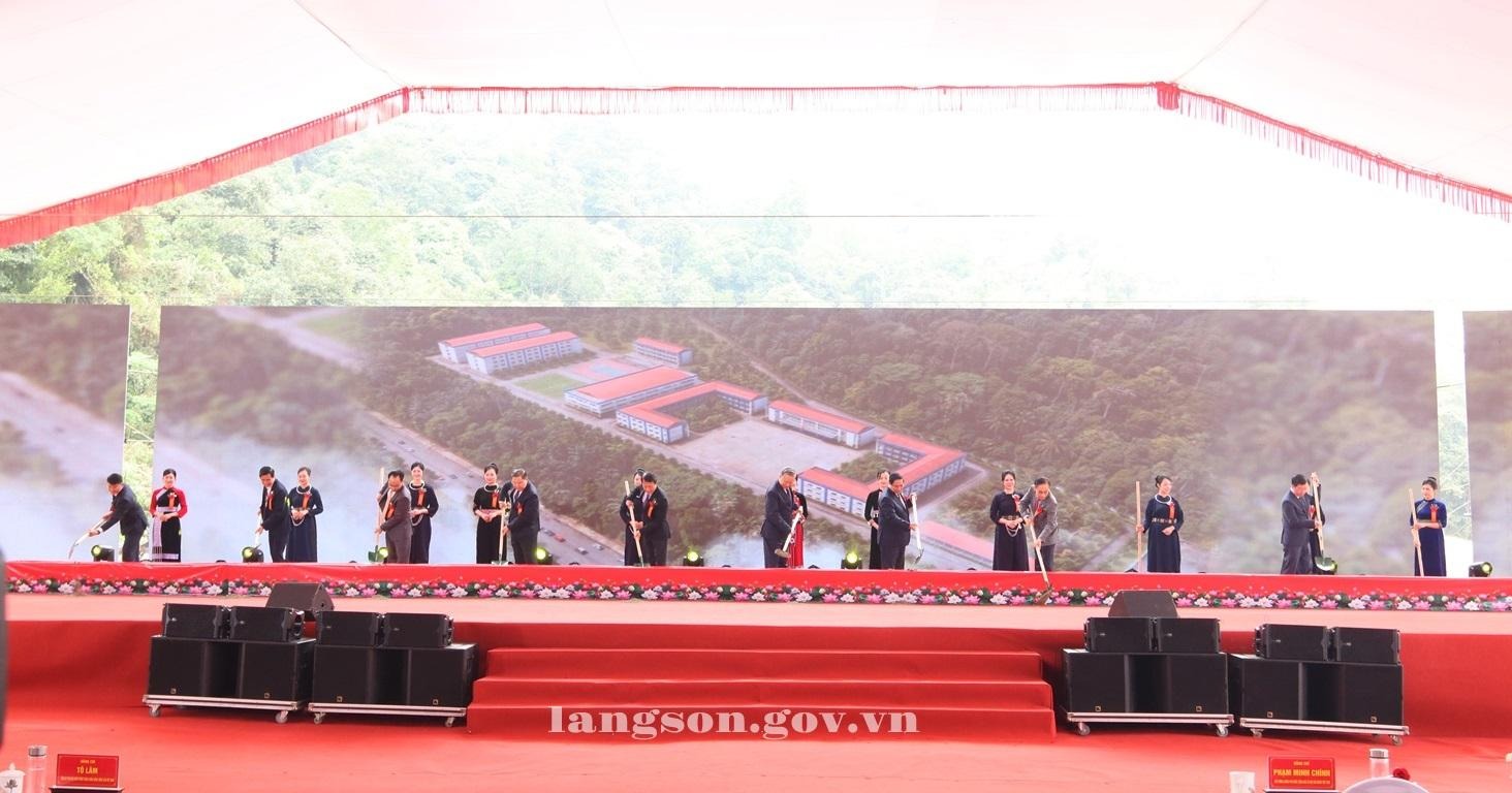 Tổng Bí thư Tô Lâm, Thủ tướng Chính phủ Phạm Minh Chính cùng các đồng chí Lãnh đạo ban, bộ, ngành Trung ương và Lãnh đạo tỉnh Lạng Sơn thực hiện nghi thức khởi công, động thổ xây dựng Trường phổ thông nội trú liên cấp vùng biên giai đoạn 2