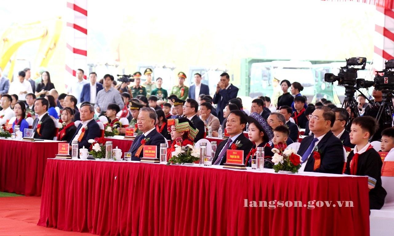 Tại buổi lễ, Tổng Bí thư Tô Lâm cùng Thủ tướng Chính phủ Phạm Minh Chính và Lãnh đạo các ban, bộ, ngành Trung ương và Lãnh đạo tỉnh Lạng Sơn đã thực hiện nghi thức khởi công, động thổ xây dựng Trường phổ thông nội trú liên cấp Tiểu học và Trung học cơ sở Đồng Đăng; đồng thời, tặng quà cho các trường học trên địa bàn xã Đồng Đăng.