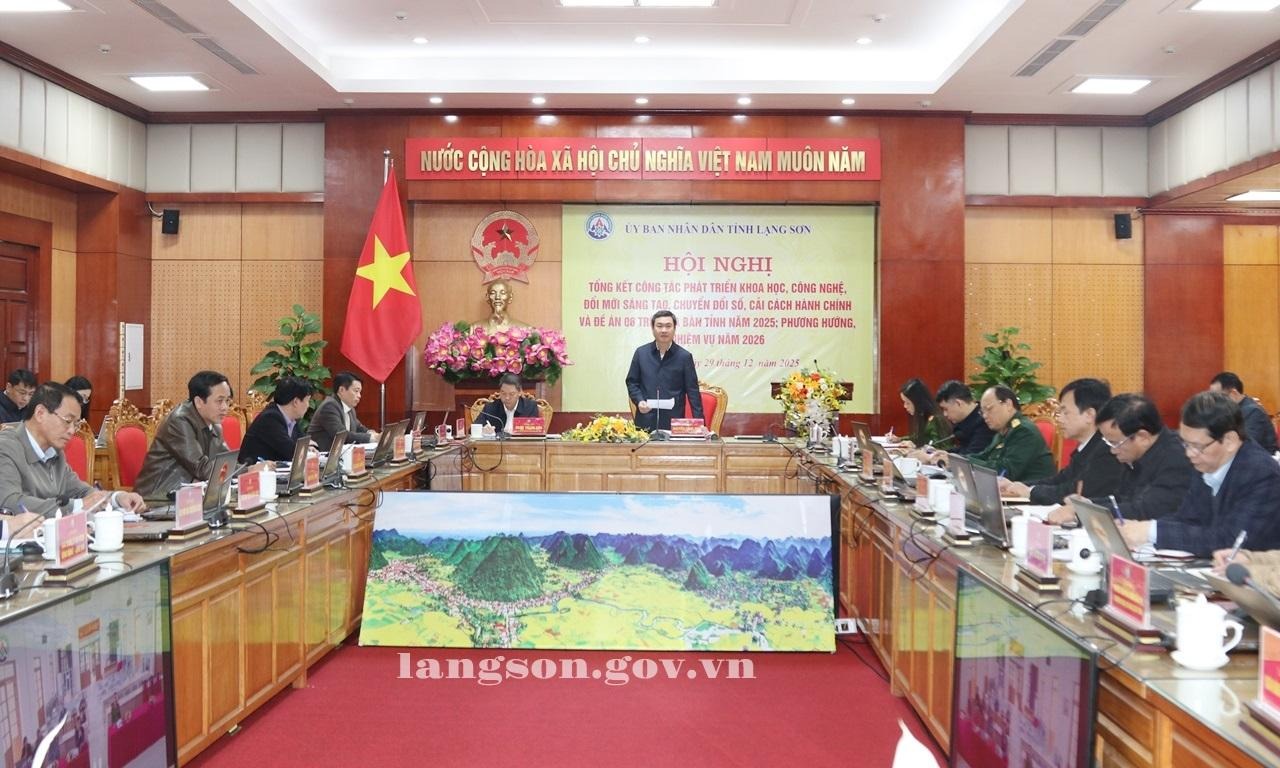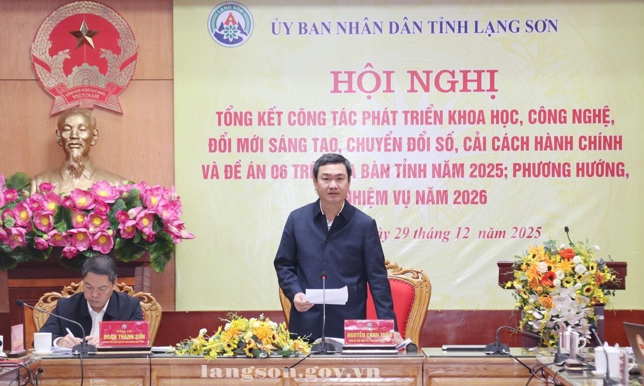 Theo báo cáo tại hội nghị, trong năm 2025, công tác phát triển khoa học, công nghệ, đổi mới sáng tạo, chuyển đổi số và Đề án 06 trên địa bàn tỉnh đạt nhiều kết quả nổi bật, tạo chuyển biến rõ nét trong hoạt động của hệ thống chính trị. Việc triển khai thực hiện Nghị quyết số 57-NQ/TW ngày 22/12/2024 của Bộ Chính trị về đột phá phát triển khoa học, công nghệ, đổi mới sáng tạo và chuyển đổi số trên địa bàn tỉnh được tổ chức triển khai đồng bộ, quyết liệt, có trọng tâm, trọng điểm. Tỉnh Lạng Sơn là 01 trong 02 tỉnh hoàn thành sớm nhất toàn bộ nhiệm vụ giai đoạn 1, đồng thời là 01 trong 03 tỉnh hoàn thành sớm nhất các nhiệm vụ được giao tại Kế hoạch số 02-KH/BCĐTW của Ban Chỉ đạo Trung ương về thúc đẩy chuyển đổi số. UBND tỉnh được giao 148 nhiệm vụ theo Nghị quyết số 71/NQ-CP của Chính phủ, Kế hoạch số 02-KH/BCĐTW và các Thông báo kết luận của Ban Chỉ đạo Trung ương. Đến thời điểm báo cáo, tỉnh đã hoàn thành 144/148 nhiệm vụ (đạt 97,3%); 04 nhiệm vụ còn lại đang triển khai đúng tiến độ, còn thời hạn thực hiện đến năm 2026, 2028.