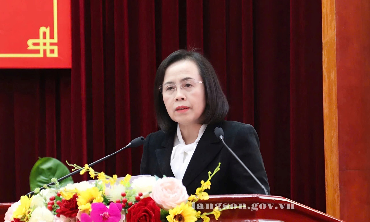 Đồng chí Đoàn Thị Hậu, Phó Bí thư Thường trực Tỉnh uỷ, Chủ tịch HĐND tỉnh phát biểu kết luận hội nghị