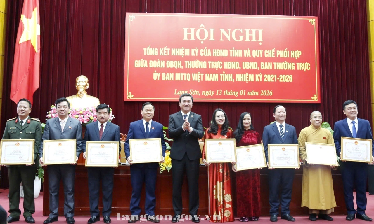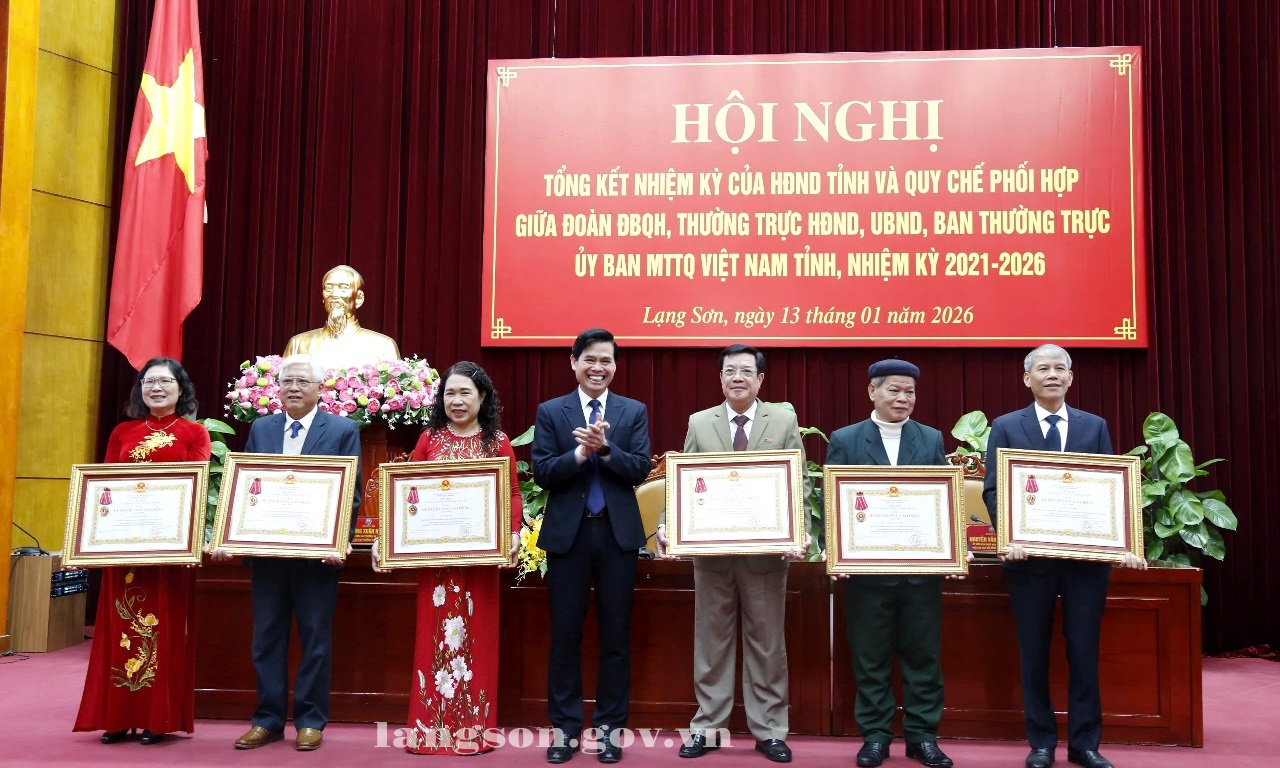 Tại hội nghị, thừa uỷ quyền của Chủ tịch nước, đồng chí Hoàng Quốc Khánh, Bí thư Tỉnh uỷ trao Huân chương Lao động hạng Nhì cho các đồng chí nguyên lãnh đạo Đoàn ĐBQH, các Ban, Văn phòng HĐND tỉnh. Nhân dịp này, 04 tập thể và 13 cá nhân đã nhận Bằng khen của Chủ tịch UBND tỉnh vì đã có thành tích xuất sắc trong hoạt động HĐND tỉnh Lạng Sơn khóa XVII, nhiệm kỳ 2021-2026./.