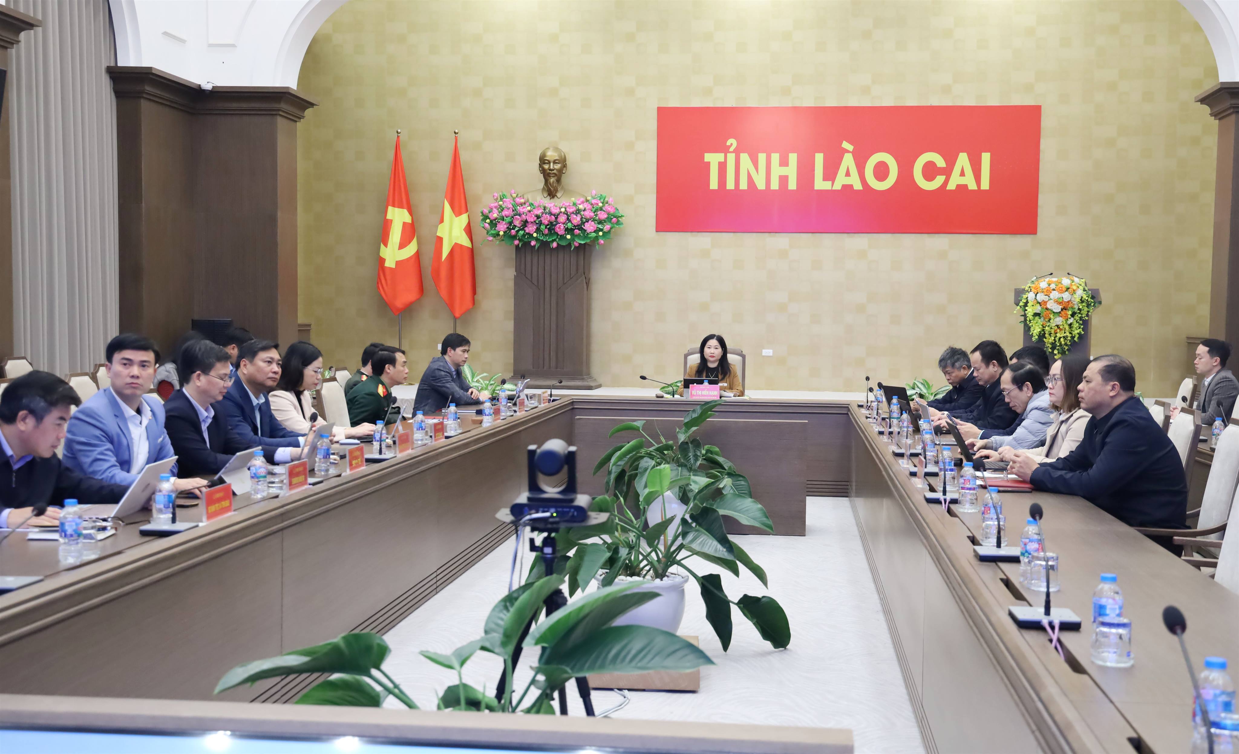 Phó Chủ tịch UBND tỉnh Vũ Thị Hiền Hạnh chủ trì Hội nghị tại điểm cầu tỉnh Lào Cai