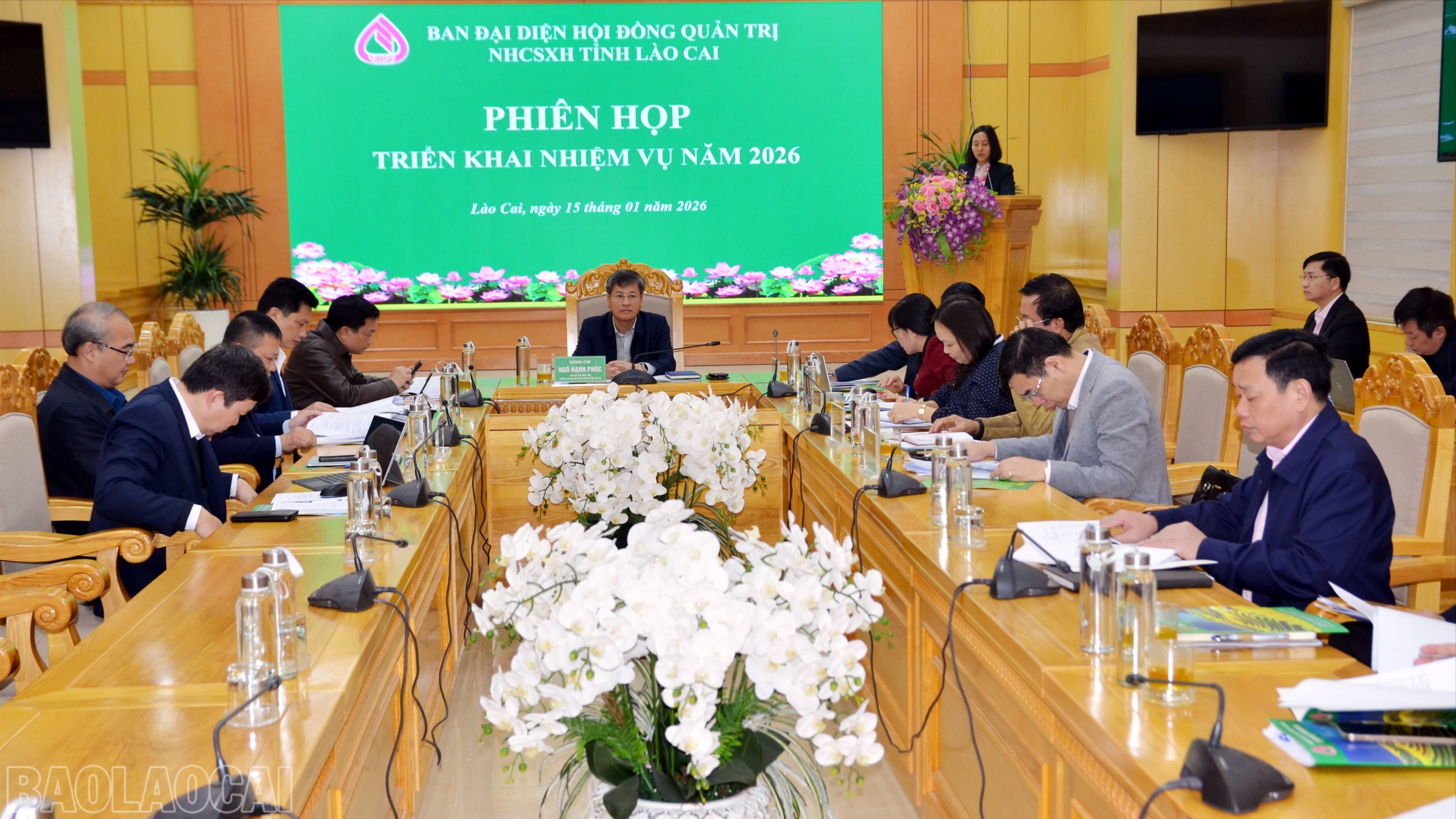 Lãnh đạo Ngân hàng Chính sách Xã hội tỉnh báo cáo tóm tắt kết quả thực hiện mục tiêu, nhiệm vụ năm 2025, phương hướng, nhiệm vụ năm 2026Tổng dư nợ cho vay các chương trình tín dụng chính sách đến ngày 31/12/2025 đạt trên 11.716 tỷ đồng, tăng 1.302 tỷ đồng so với đầu năm với trên 49.707 lượt hộ nghèo, hộ cận nghèo và các đối tượng chính sách khác được vay vốn. Vốn tín dụng chính sách giải ngân trong năm đã hỗ trợ kịp thời người dân phát triển sản xuất, kinh doanh, tạo việc làm và giải quyết nhu cầu thiết yếu trong sinh hoạt, bảo đảm an sinh xã hội tại địa phương.Các đại biểu dự phiên họp.Để thực hiện mục tiêu năm 2026, nguồn vốn ủy thác từ ngân sách địa phương hoàn thành tối thiểu 200% kế hoạch được giao; tỷ lệ tăng trưởng dư nợ đạt tỷ lệ tăng trên 10% so với năm 2025; nâng cao chất lượng tín dụng với chỉ tiêu tỷ lệ nợ quá hạn dưới 0,06% so với tổng dư nợ... các đại biểu tập trung thảo luận đề xuất những giải pháp, kiến nghị để thực hiện hiệu quả mục tiêu năm 2026.Đại biểu Hội Nông dân tỉnh phát biểu thảo luận tại phiên họpPhát biểu kết luận phiên họp, đồng chí Ngô Hạnh Phúc - Ủy viên Ban Thường vụ Tỉnh ủy, Phó Chủ tịch UBND tỉnh, Trưởng Ban đại diện Hội đồng quản trị Ngân hàng CSXH tỉnh ghi nhận và biểu dương kết quả Ngân hàng CSXH tỉnh đã đạt được năm 2025. Để thực hiện mục tiêu, nhiệm vụ năm 2026 và những năm tiếp theo, đồng chí Phó Chủ tịch UBND tỉnh Ngô Hạnh Phúc đề nghị Ngân hàng CSXH tỉnh tích cực tham mưu UBND tỉnh chuyển vốn ủy thác từ nguồn vốn đầu tư công và các nguồn khác sang Ngân hàng CSXH theo Nghị quyết của HĐND tỉnh để cho vay tạo việc làm, đảm bảo sinh kế, thúc đẩy phát triển kinh tế - xã hội của tỉnh.Thành viên Ban đại diện chủ động bố trí thời gian thực hiện kiểm tra giám sát năm 2026 theo phân công, nắm bắt khó khăn, vướng mắc trong việc triển khai tín dụng chính sách, đặc biệt là vướng mắc sau sắp xếp sáp nhập và thực hiện chính quyền địa phương hai cấp để có giải pháp chỉ đạo kịp thời.Đồng chí Ngô Hạnh Phúc - Ủy viên Ban Thường vụ Tỉnh ủy, Phó Chủ tịch UBND tỉnh, Trưởng Ban đại diện Hội đồng quản trị Ngân hàng Chính sách Xã hội tỉnh phát biểu kết luận phiên họp.Thành viên các sở, ngành tiếp tục rà soát, nghiên cứu tham mưu đề xuất, ban hành các cơ chế, chính sách cho vay ưu đãi hỗ trợ tạo việc làm cho người lao động, phát triển kinh tế tư nhân theo Nghị quyết 68-NQ/TW ngày 4/5/2025 của Bộ Chính trị; phát triển du lịch cộng đồng; phát triển sản phẩm cây trồng, vật nuôi có thế mạnh của địa phương, nghề thủ công truyền thống, khởi nghiệp, lao động đi làm việc có thời hạn ở nước ngoài, nhà ở cho người nghèo, người thu nhập thấp, nhà ở công nhân… gắn với chuyển vốn ủy thác sang Ngân hàng CSXH để thực hiện cho vay.Các đại biểu tham dự phiên họp.Chỉ đạo các phòng giao dịch Ngân hàng CSXH trực thuộc phối hợp với các ban, ngành, tổ chức chính trị - xã hội nhận ủy thác, UBND cấp xã, đơn vị liên quan tổ chức thực hiện hoàn thành toàn diện chỉ tiêu; phối hợp tổ chức rà soát đối tượng, khảo sát nhu cầu vốn tại địa bàn có tỷ lệ hộ nghèo, hộ cận nghèo, hộ mới thoát nghèo cao, nhất là khu vực thuộc vùng khó khăn, vùng đồng bào dân tộc thiểu số để ưu tiên giải ngân, đưa ngay vốn vào phục vụ sản xuất, kinh doanh đúng thời vụ; đẩy mạnh tuyên truyền chính sách tín dụng ưu đãi của Chính phủ và của tỉnh, đặc biệt là các chính sách mới được ban hành, có ảnh hưởng lớn đến đời sống xã hội, giảm nghèo, tạo việc làm, sinh kế đối với người dân...