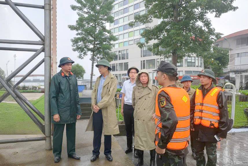 Đại tá Nguyễn Đức Cương, Chính uỷ Bộ CHQS tỉnh Lào Cai (người đứng đầu tiên từ trái sang) đi kiểm tra thực tế tình hình ngập lụt trên địa bàn thành phố Lào Cai năm 2024 (Nay là phường Lào Cai, tỉnh Lào Cai)