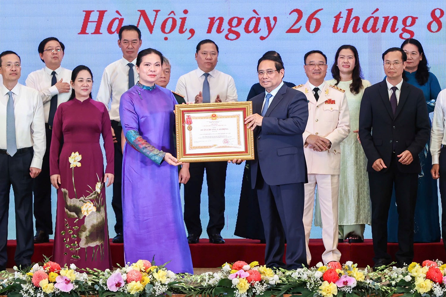 | Thủ tướng trao tặng Huân chương Lao động hạng Ba cho Ủy ban Trung ương MTTQ Việt Nam vì có thành tích xuất sắc thực hiện Chương trình và phong trào thi đua “Cả nước chung tay xóa nhà tạm, nhà dột nát trong năm 2025 - Ảnh: VGP/Nhật Bắc |