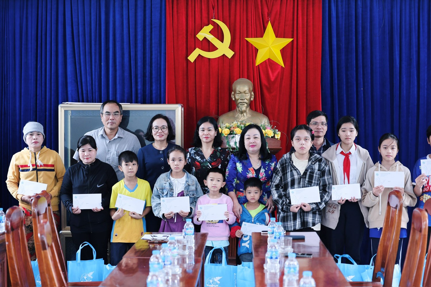 | Chủ tịch Ủy ban Trung ương MTTQ Việt Nam Bùi Thị Minh Hoài tặng quà hỗ trợ, động viên các hộ bị thiệt hại nặng bởi thiên tai tại xã Ka Đô, tỉnh Lâm Đồng |