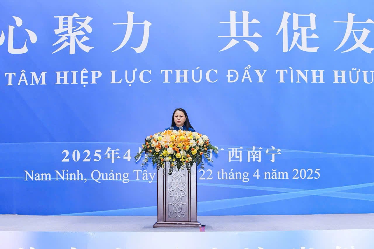 | Bà Nguyễn Thị Thu Hà, Ủy viên Trung ương Đảng, Phó Chủ tịch - Tổng Thư ký Ủy ban Trung ương MTTQ Việt Nam phát biểu tại Chương trình giao lưu hữu nghị |