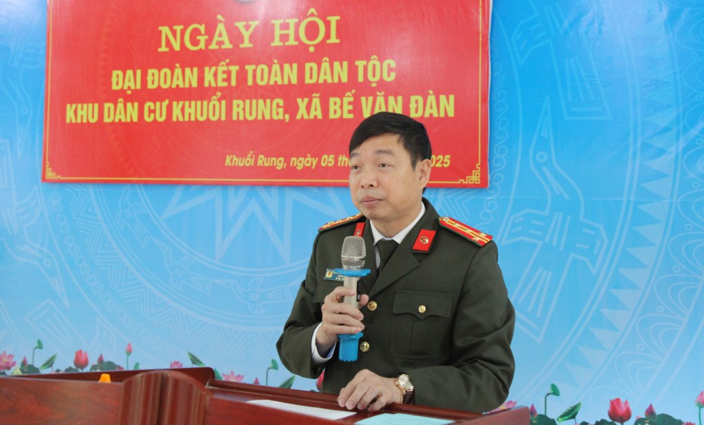 Phát biểu tại ngày hội, Đại tá Nguyễn Quang Vinh, Giám đốc Công an tỉnh đề nghị cấp ủy chính quyền địa phương và bà con nhân dân tiếp tục phát huy truyền thống đoàn kết, tương thân tương ái trong cộng đồng, lấy ngày hội đại đoàn kết hằng năm để đánh giá, biểu dương, rút kinh nghiệm, nhân rộng mô hình tốt, cách làm hay; Nâng cao trách nhiệm mỗi người dân trong bảo vệ an ninh Tổ quốc, an ninh biên giới, an ninh trật tự xóm, chủ động tố giác, ngăn chặn các hành vi vi phạm pháp luật không để các thế lực xấu lợi dụng, kích động chia rẽ khối đại đoàn kết dân tộc.
