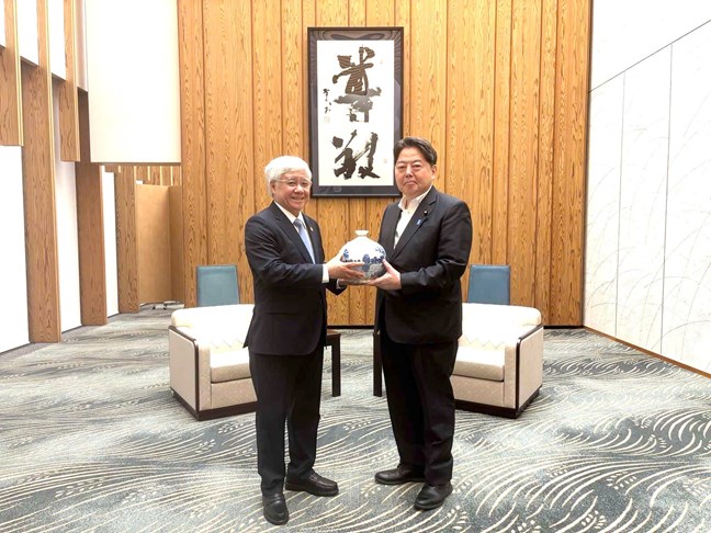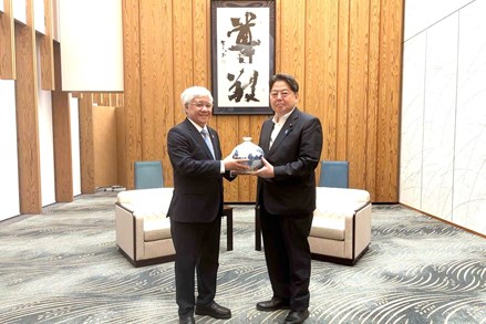 Trước khi rời Nhật Bản để bắt đầu chuyến thăm hữu nghị Hàn Quốc, ông Đỗ Văn Chiến đã hội kiến Bộ trưởng Hayashi Yoshimasa - Chánh Văn phòng Nội các Nhật Bản.