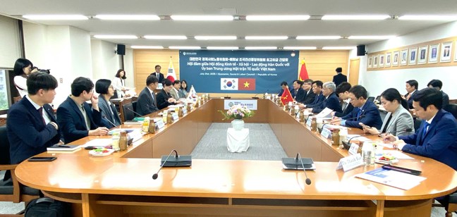 Cùng ngày 31/7, Đoàn đại biểu Mặt trận Tổ quốc Việt Nam đã có cuộc hội đàm với Chủ tịch Hội đồng Kinh tế-Xã hội-Lao động Hàn Quốc (ELSC) Kwon Gi Seop.