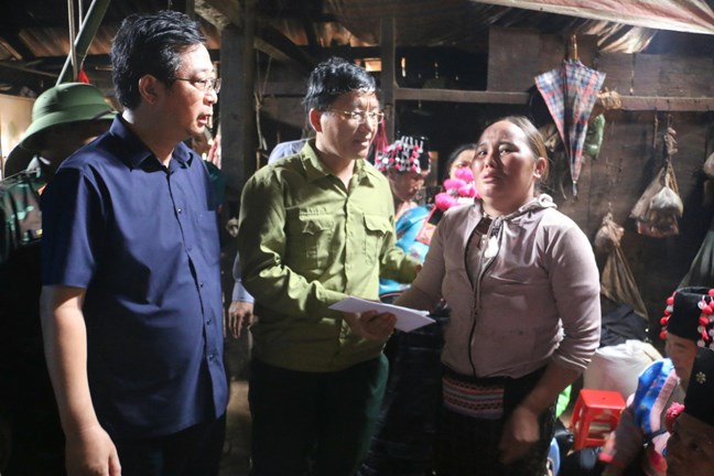 | Đoàn công tác thăm hỏi, động viên gia đình ông Vàng A Ná, bản Chống Sư A, xã Xa Dung có 3 người bị thiệt mạng do lũ quét. |