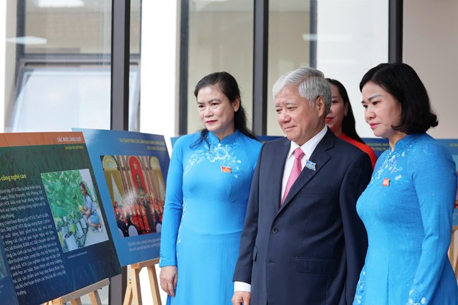 | Đồng chí Đỗ Văn Chiến cùng các đại biểu tham quan triển lãm ảnh tại Đại hội |