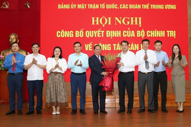 Tại Hội nghị, đồng chí Đỗ Trọng Hưng, Ủy viên Trung ương Đảng, Phó Trưởng ban Tổ chức Trung ương đã công bố Quyết định của Bộ Chính trị điều động, phân công, chỉ định tham gia Ban Chấp hành, Ban Thường vụ Đảng ủy và giữ chức Phó Bí thư Đảng ủy MTTQ, các đoàn thể Trung ương nhiệm kỳ 2020-2025.