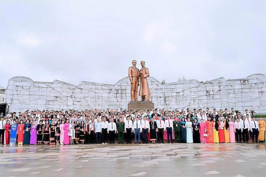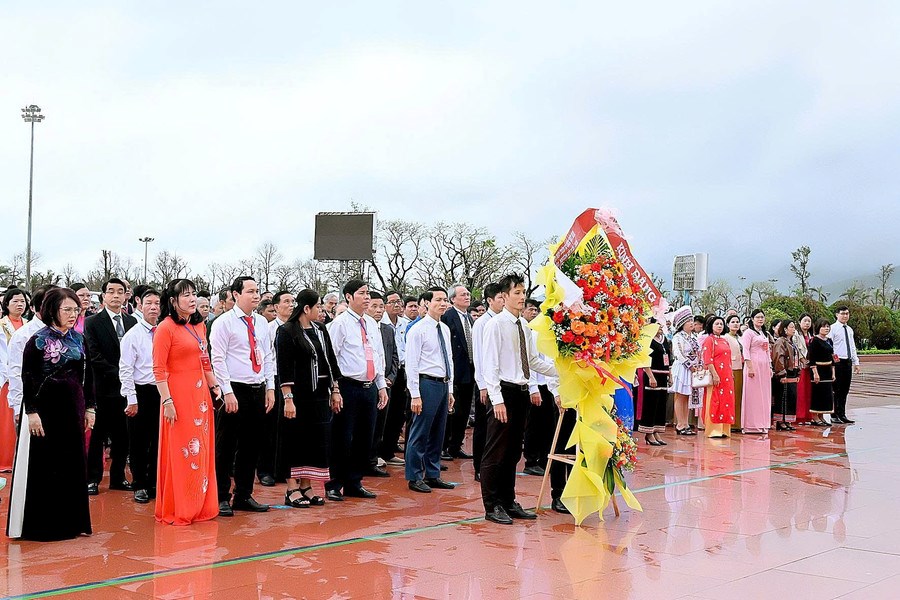 | Đoàn đại biểu dâng hoa tại Tượng đài Nguyễn Sinh Sắc - Nguyễn Tất Thành |