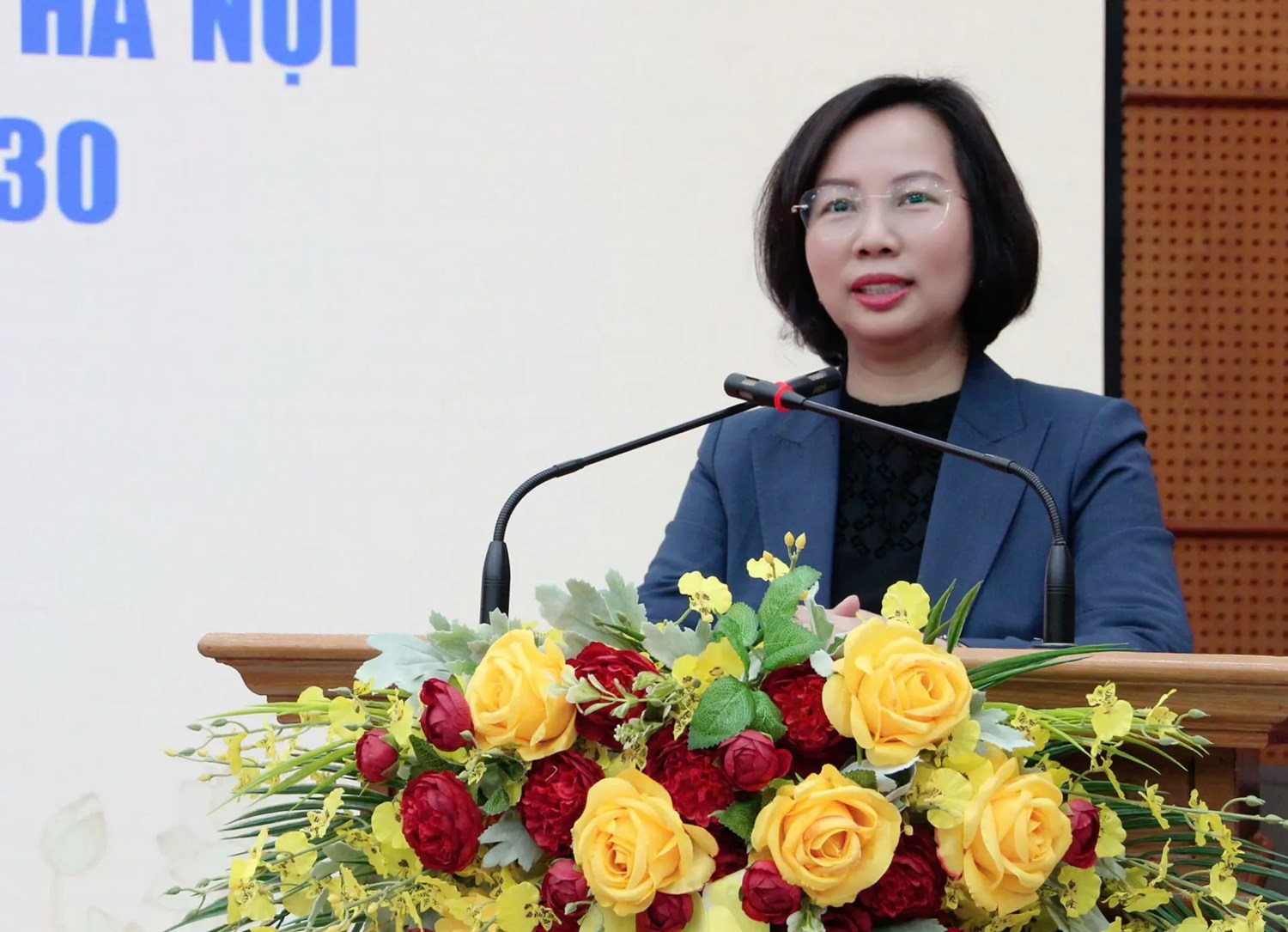 | Chủ tịch Ủy ban Mặt trận Tổ quốc Việt Nam TP Hà Nội Bùi Huyền Mai phát biểu |