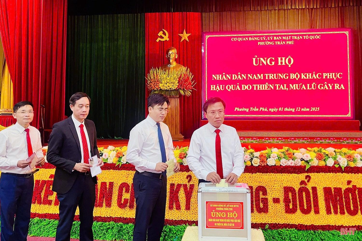 Chung tay ủng hộ đồng bào vùng bị ảnh hưởng thiên tai, bão lũ, sáng 1/12, Đảng ủy - UBND - HĐND - Ủy ban MTTQ các xã, phường trên địa bàn Hà Tĩnh cũng đã tổ chức các hoạt động hưởng ứng thiết thực.