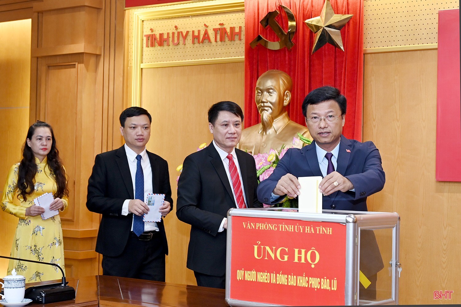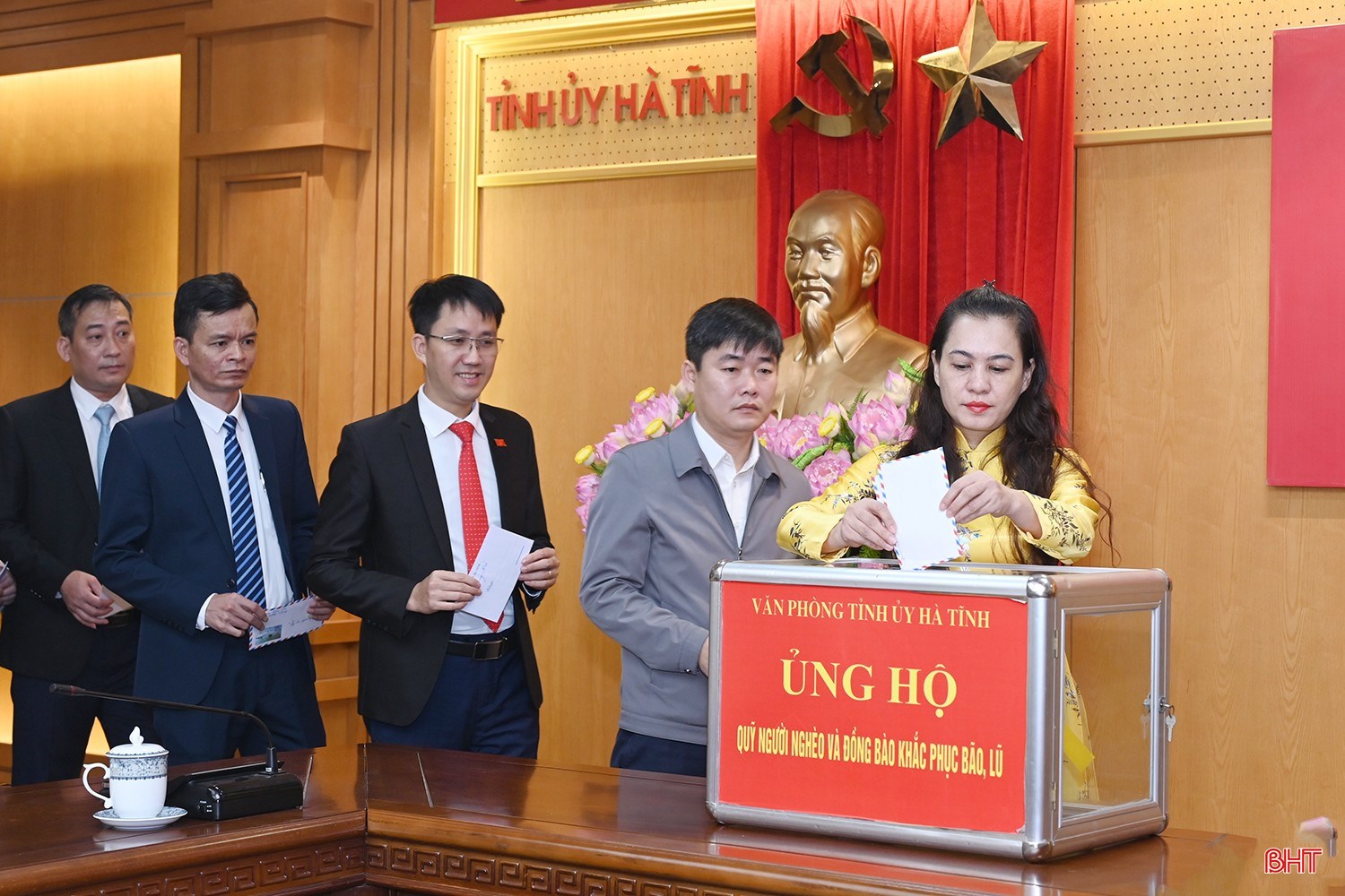 Hưởng ứng lời kêu gọi của Ủy ban Trung ương MTTQ Việt Nam, phát động của Tỉnh ủy - HĐND - UBND - Ủy ban MTTQ Việt Nam tỉnh Hà Tĩnh, phát huy truyền thống đại đoàn kết toàn dân tộc, với tinh thần “Tương thân tương ái”, Cơ quan Văn phòng Tỉnh ủy Hà Tĩnh đã kêu gọi toàn thể cán bộ, công chức, người lao động cùng chung tay chia sẻ, ủng hộ người dân vùng bị thiệt hại sớm vượt qua giai đoạn khó khăn do bão lũ.