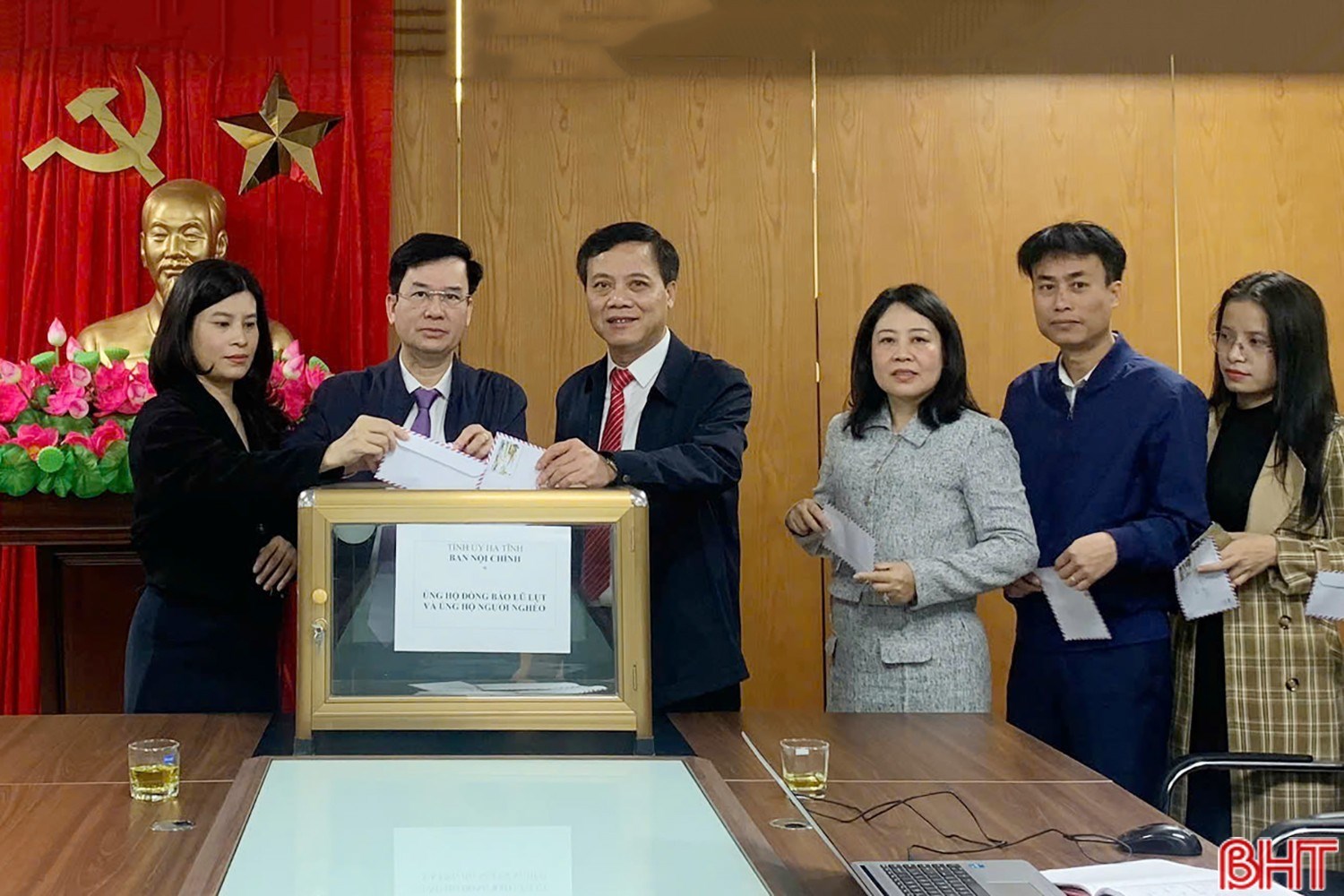 | Cơ quan Ban Nội chính Tỉnh ủy dành tối thiểu mỗi người một ngày lương ủng hộ đồng bào bị ảnh hưởng lũ lụt, thiên tai. Số kinh phí ủng hộ sẽ được kịp thời chuyển đến Ban Vận động Quỹ Cứu trợ tỉnh Hà Tĩnh |