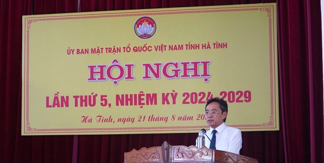 Sáng 21/8, Ủy ban MTTQ Việt Nam tỉnh Hà Tĩnh tổ chức Hội nghị lần thứ 5, nhiệm kỳ 2024-2029. Tham dự hội nghị có Phó Bí thư Thường trực Tỉnh ủy Hà Tĩnh Trần Thế Dũng và đại diện lãnh đạo các sở, ban, ngành.