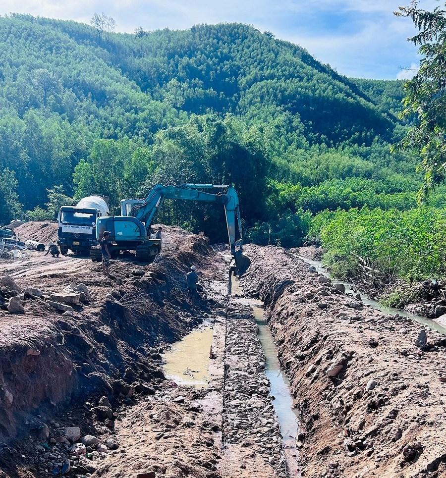 | Nhờ nguồn lực từ Dự án 4, UBND xã Vân Canh đang đầu tư xây dựng kè chống sạt lở tại làng Kà Te. |