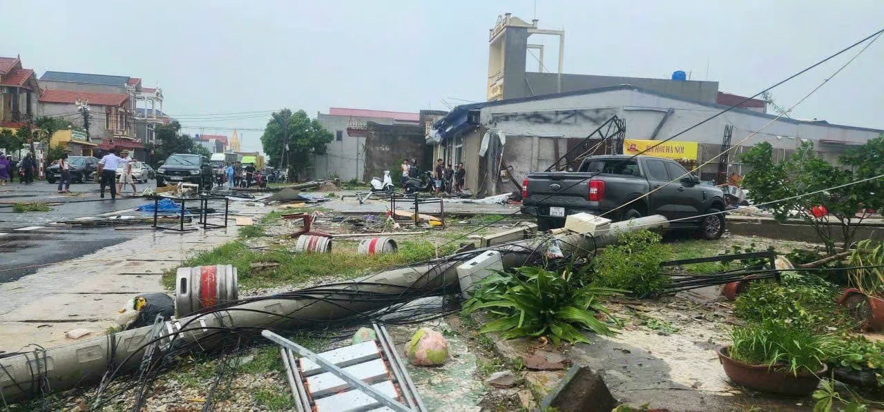| Lốc xoáy gây thiệt hại về người và tài sản tại xã Thái Thụy, tỉnh Hưng Yên. Ảnh: Người dân cung cấp |