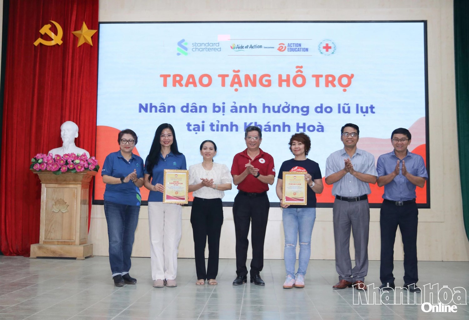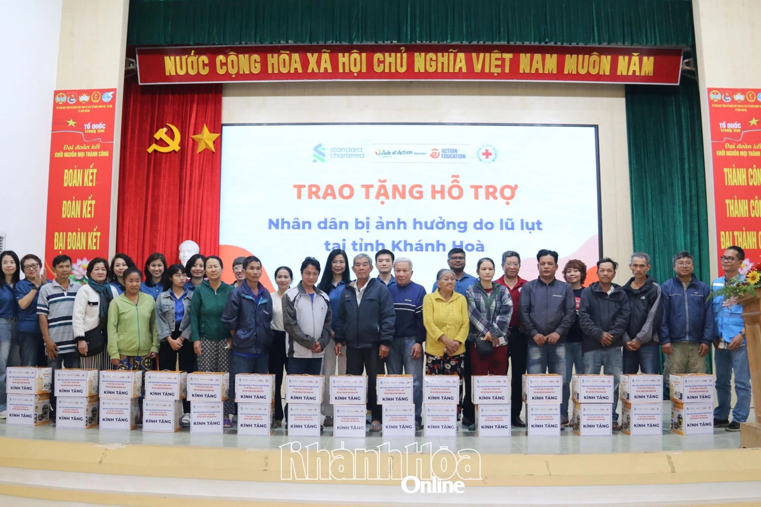 | Trao quà hỗ trợ người dân xã Diên Khánh, tỉnh Khánh Hòa. |
