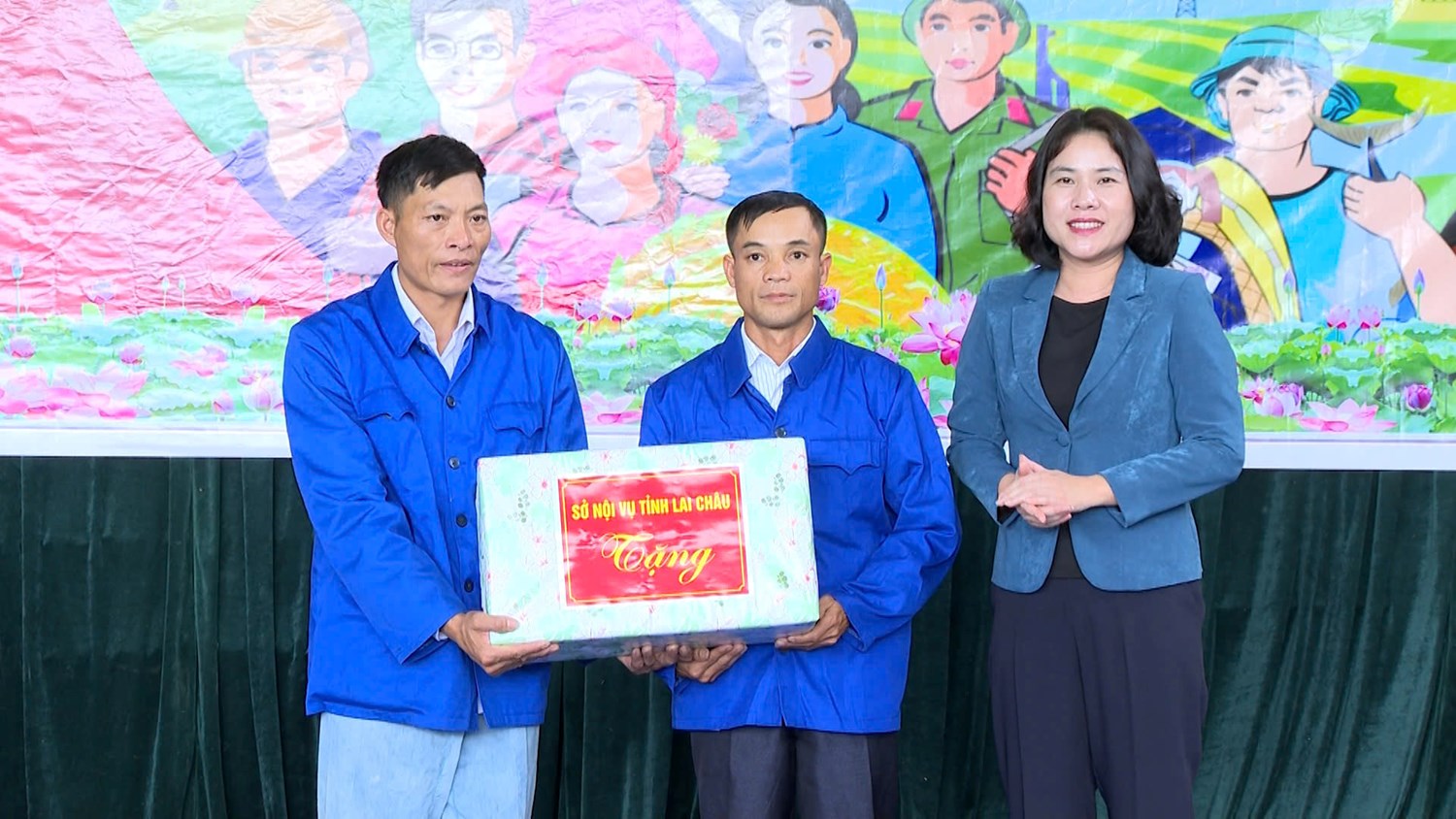 | Bà Đào Thị Lan Anh – Giám đốc Sở Nội vụ tặng quà cho đại diện bản Dền Thàng |