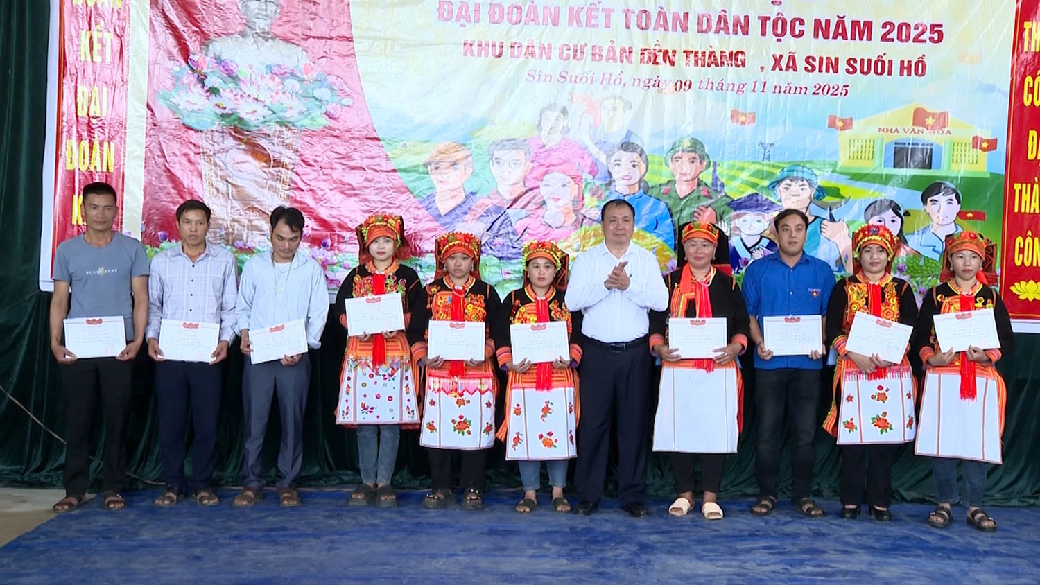 | Lãnh đạo UBND xã Sin Suối Hồ trao giấy chứng nhận cho các hộ đạt danh hiệu “Gia đình văn hoá” tiêu biểu năm 2025 |