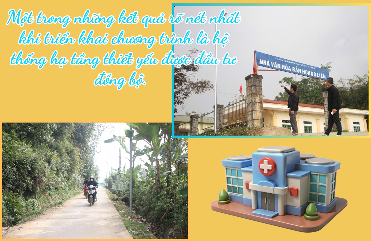 Một trong những kết quả rõ nét nhất khi triển khai chương trình là hệ thống hạ tầng thiết yếu được đầu tư đồng bộ. Đến nay, tỷ lệ xã có đường ôtô đến trung tâm xã được rải nhựa hoặc bê-tông đạt 100%; tỷ lệ trạm y tế được xây dựng kiên cố đạt 100%; tỷ lệ số hộ được sử dụng điện lưới quốc gia đạt 98,3%; tỷ lệ đồng bào dân tộc thiểu số được sử dụng nước sinh hoạt hợp vệ sinh đạt 91,5%. Không chỉ đầu tư hạ tầng, chương trình còn chú trọng hỗ trợ phát triển sản xuất, tạo sinh kế bền vững. Nhiều mô hình trồng chè, mắc-ca, quế, chăn nuôi trâu, bò sinh sản được triển khai phù hợp với từng vùng sinh thái. Nhờ vậy, nhiều hộ mạnh dạn chuyển đổi mô hình canh tác, áp dụng tiến bộ khoa học kỹ thuật vào sản xuất, nâng cao thu nhập.