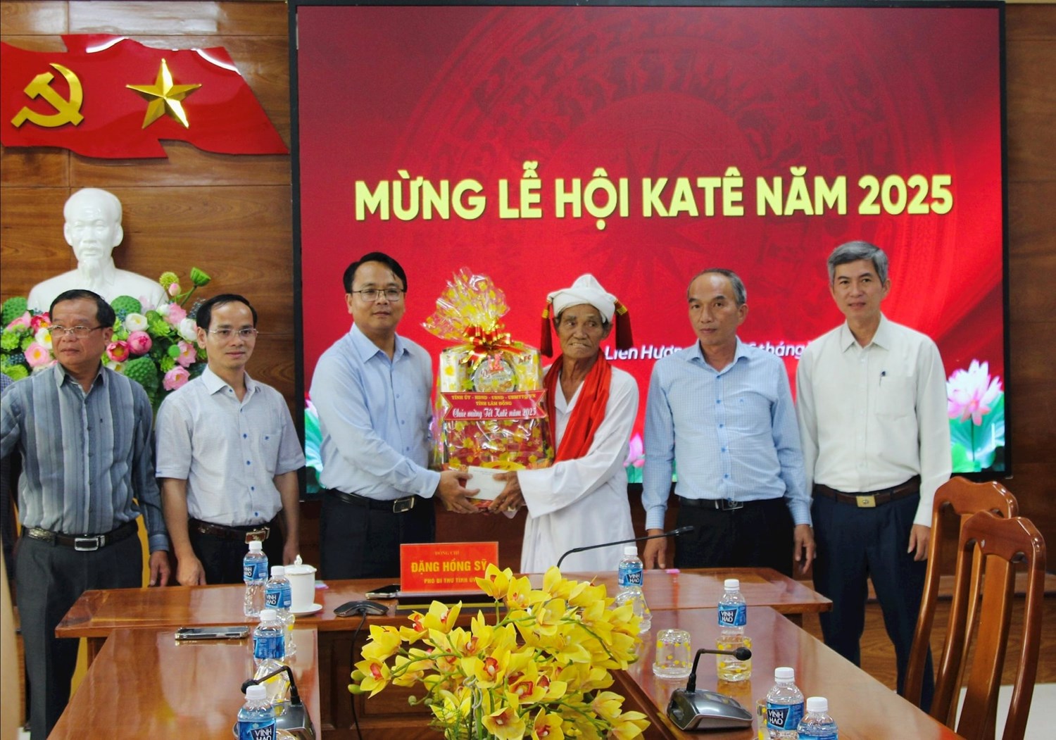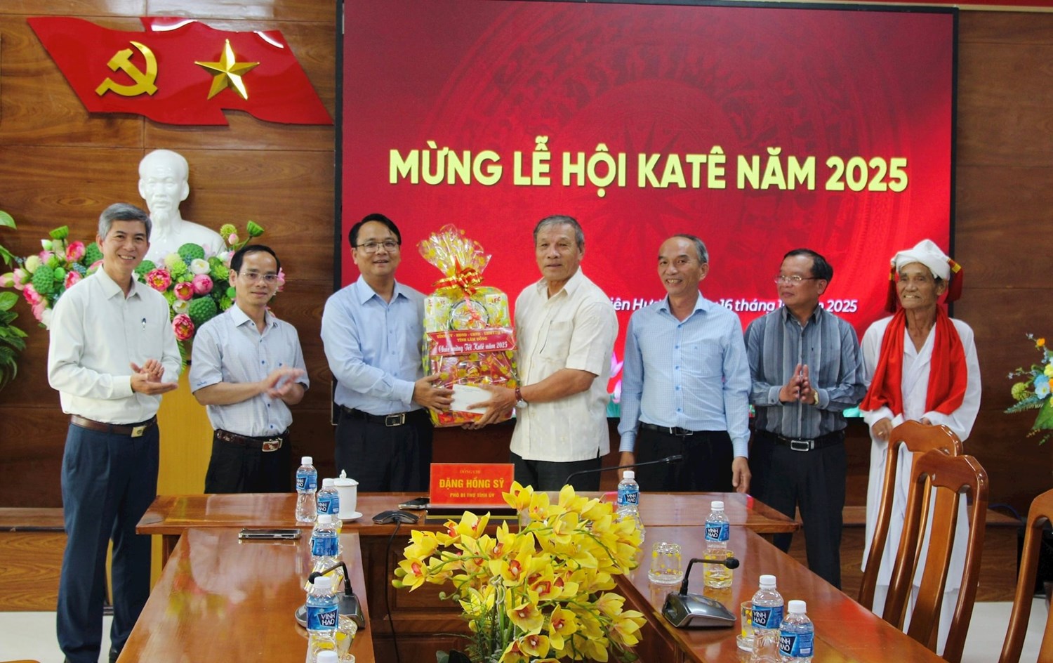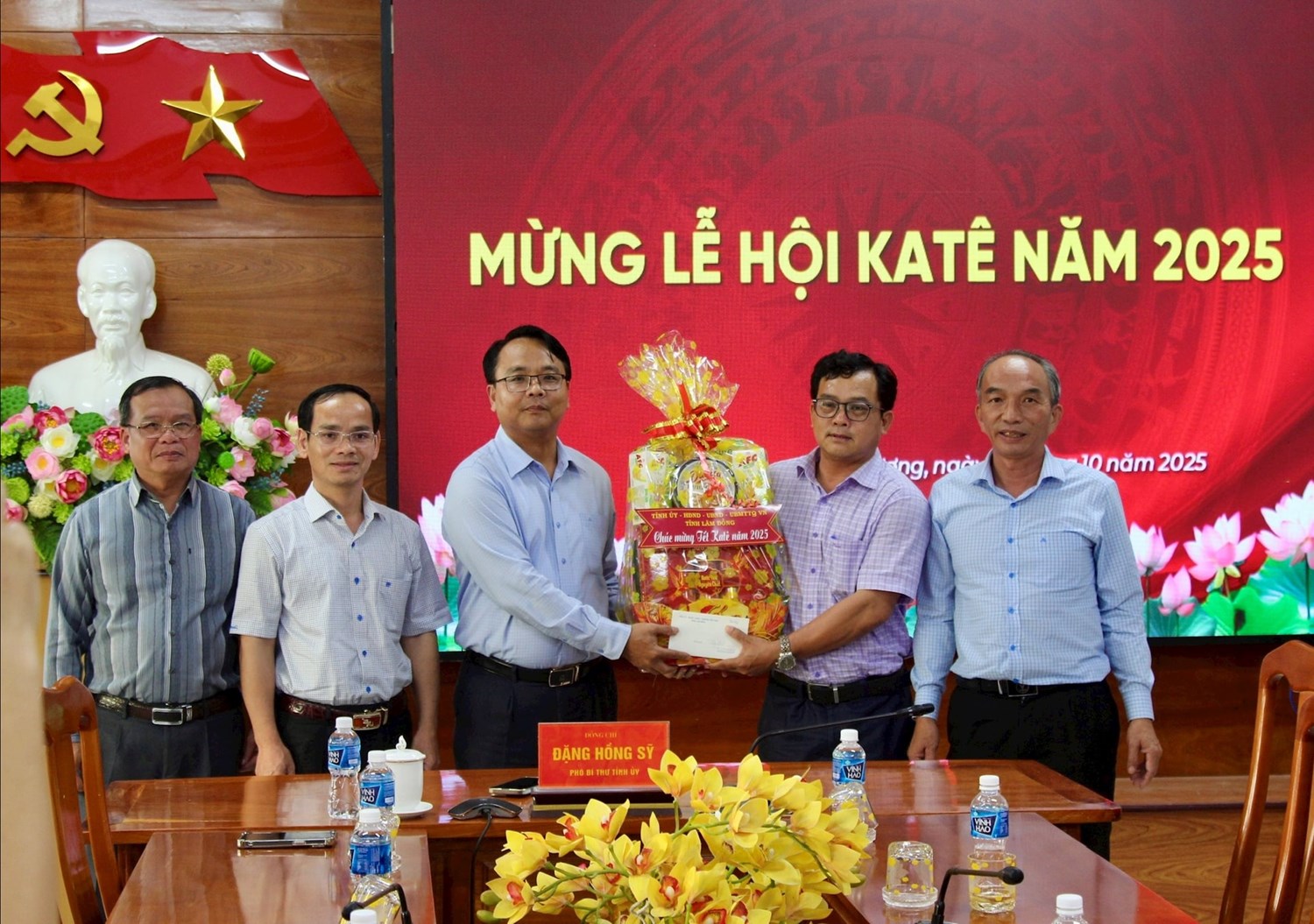| Phó Bí thư Tỉnh ủy Đặng Hồng Sỹ đã gửi lời chúc mừng Tết Katê đến Đảng ủy, HĐND, UBND, Ủy ban MTTQ Việt Nam xã Liên Hương |