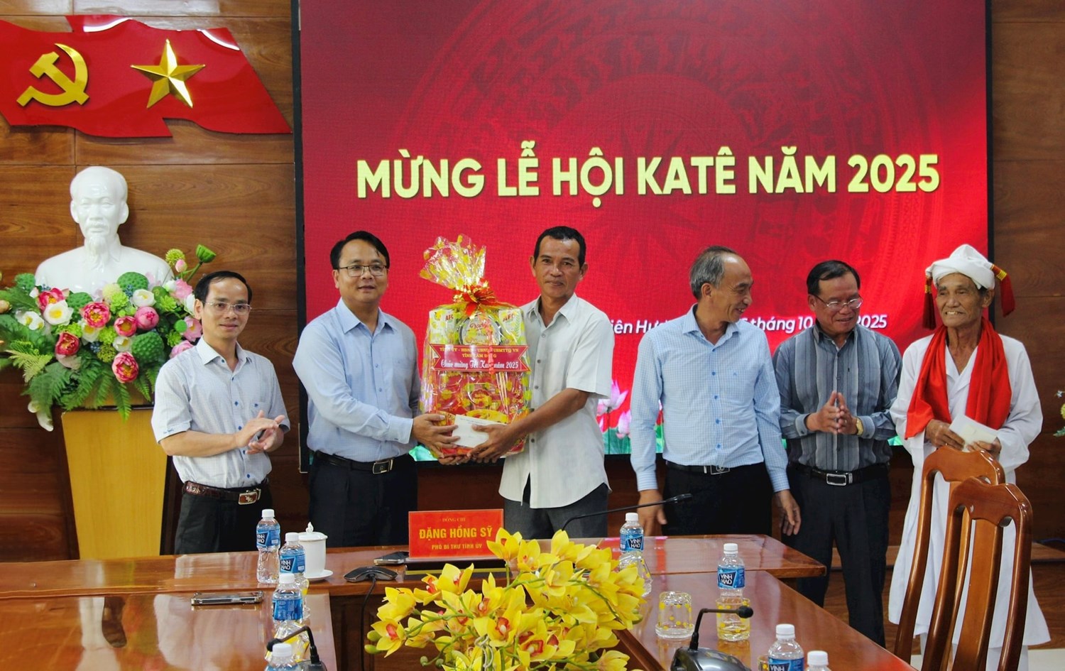 Tại trụ sở UBND xã Liên Hương, đồng chí Đặng Hồng Sỹ đã gửi lời chúc mừng Tết Katê đến Đảng ủy, HĐND, UBND, Ủy ban MTTQ Việt Nam xã, Ban Điều hành thôn Lạc Trị, đại diện Đền Bà Chúa và ông Thường Xuân Hữu (thôn Lạc Trị), người có uy tín trong cộng đồng Chăm; sư cả Đàng Ngọc (thôn Lạc Trị).