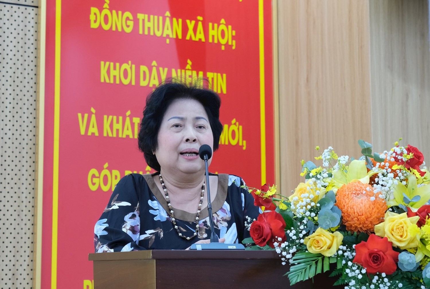 | Đồng chí Phạm Thị Phúc, Phó Bí thư Tỉnh ủy, Chủ tịch Ủy ban MTTQ Việt Nam tỉnh phát biểu tại chương trình |