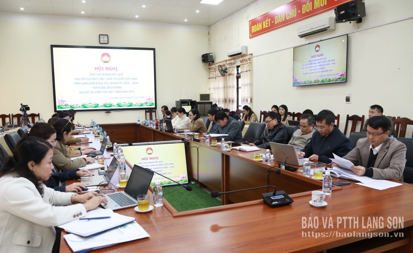 (Mặt trận) - Ngày 28/11, Ban Thường trực Ủy ban MTTQ Việt Nam tỉnh tổ chức hội nghị báo cáo nhanh kết quả Đại hội đại biểu MTTQ tỉnh Lạng Sơn khóa XVI, nhiệm kỳ 2025 - 2030 và tập huấn, bồi dưỡng nghiệp vụ công tác Mặt trận năm 2025.